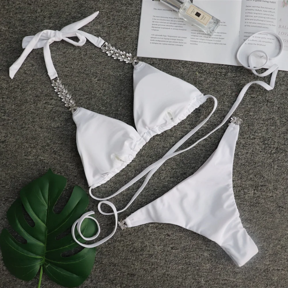 Melphieer перекрещивающееся бикини 2020, Женский треугольный купальник, купальный костюм с кристаллами, Ювелирное Украшение, женский купальник, летние купальники