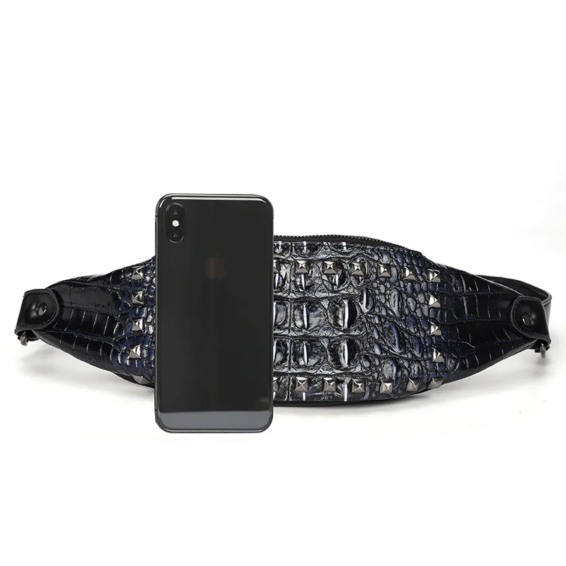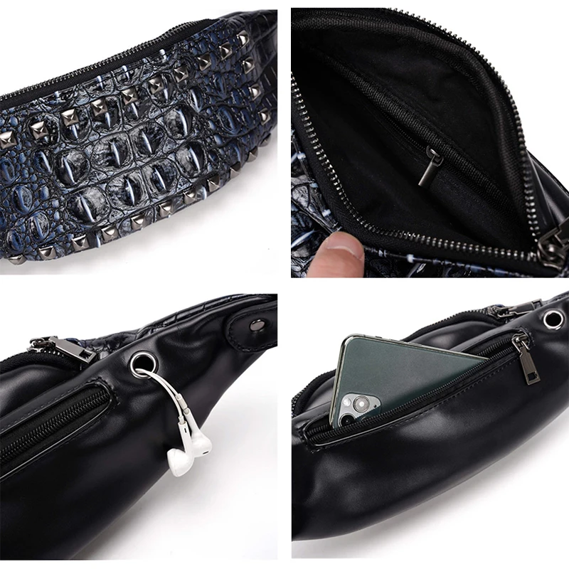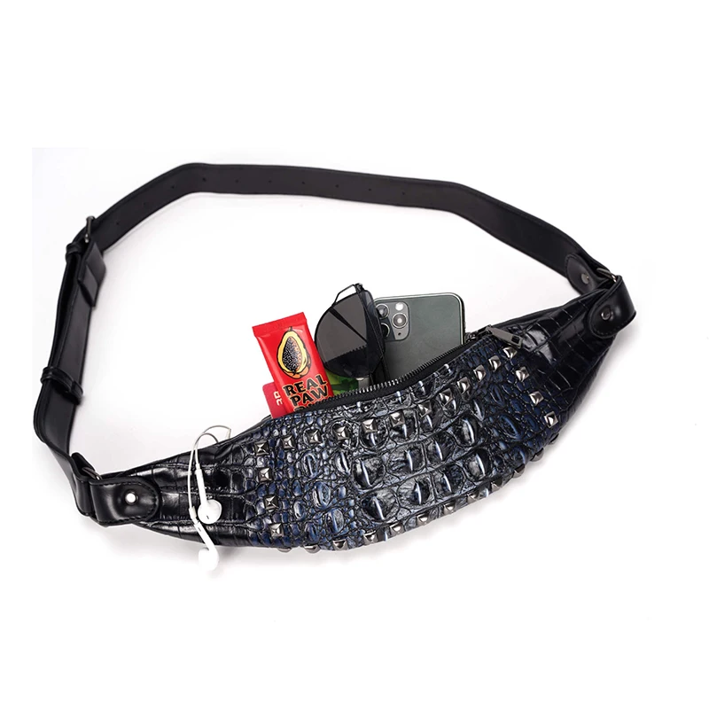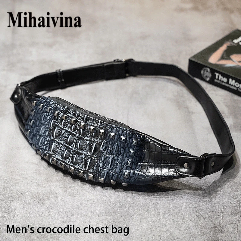 Забавная поясная сумка Mihaivina для мужчин, Мужская нагрудная Сумочка с крокодиловой текстурой и заклепками, ранцы через плечо