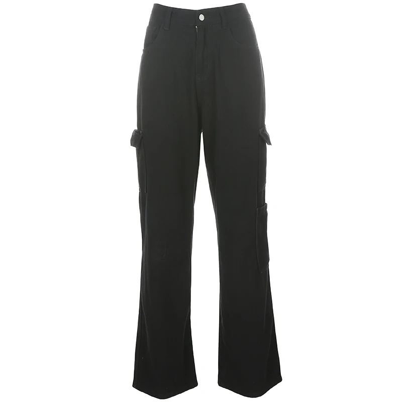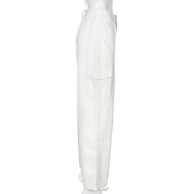 Брюки-карго женские джинсовые с высокой талией и карманами