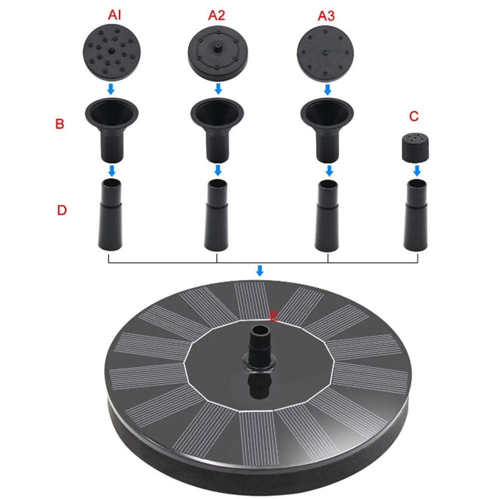 Солнечный водяной фонтан поставляется с 4 распылительными головками в разных узорах распыления, Выберите любой шаблон распылительной воды, который вам нравится. Птицы, бабочки и другие маленькие животные будут привлекаться здесь, делает ваш сад более динамичным и красивым.