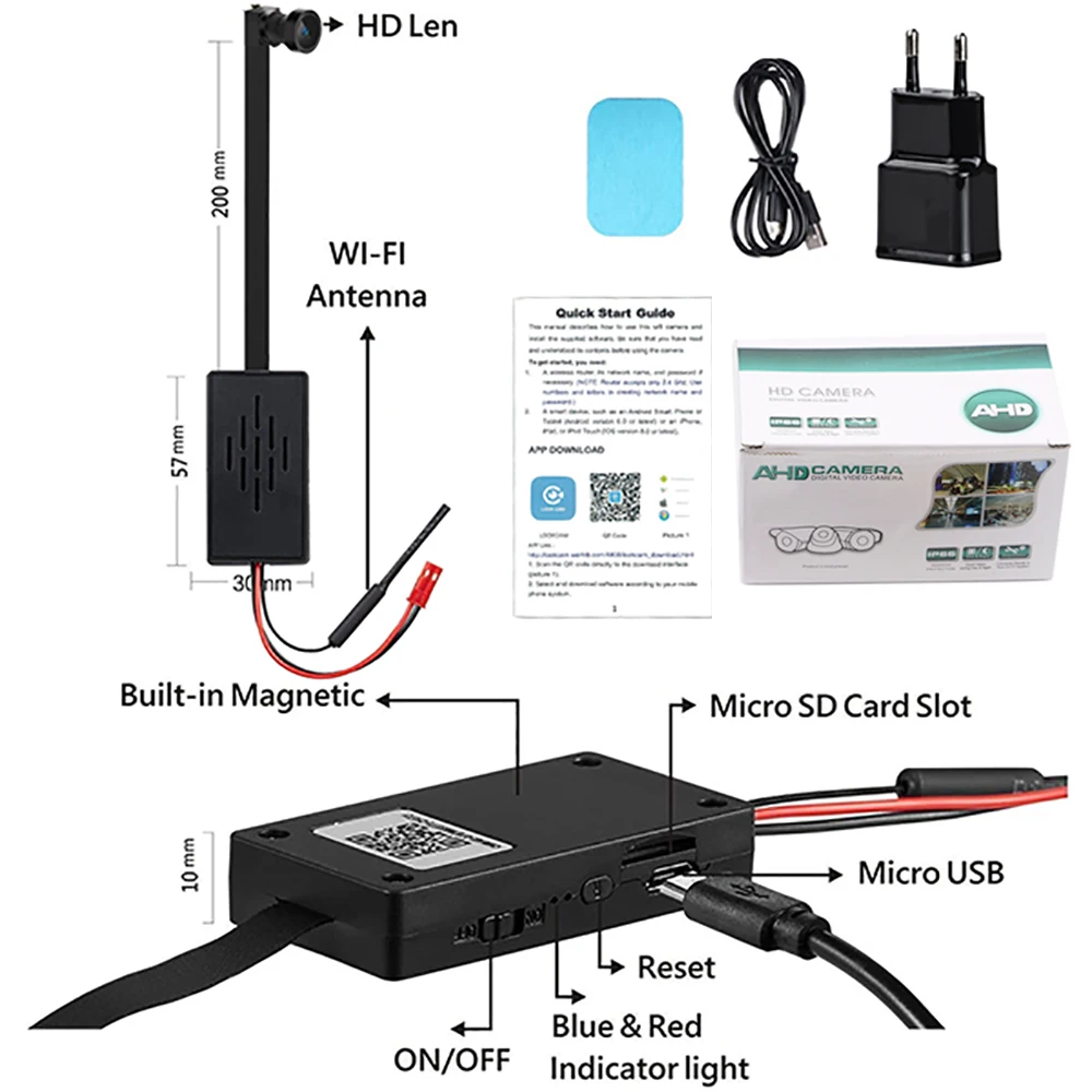 Мини-камера видеонаблюдения HD 1080P, переносная Магнитная IP-камера для самостоятельной сборки, цикличная запись движения, поддержка DV, удаленный просмотр, шпионская Микро Скрытая TF-карта