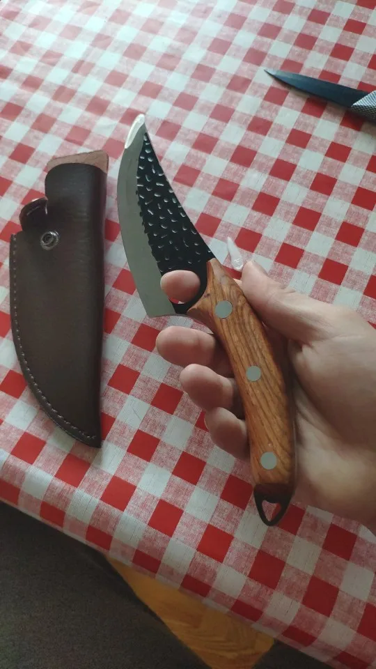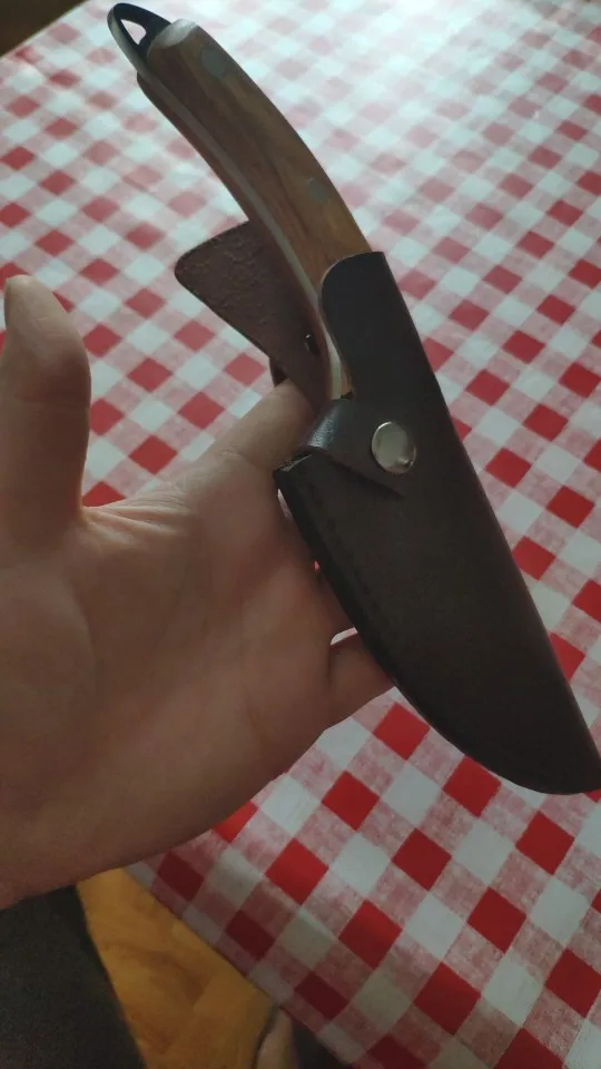 Нож выглядит действительно хорошо, и хорошая цена в порядке. Но деревянная ручка воняет, как корова или навоз! Ужасно, я все равно не могу мыть. Впустую деньги :(