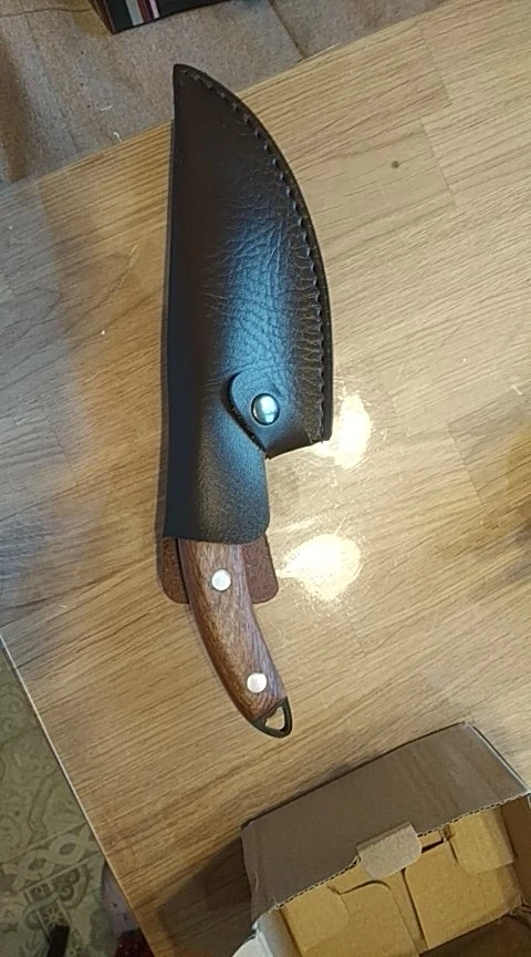 Супер! Рекомендую! Заказал 11.11, Мега быстрая доставка во Львов 30.11! Очень качественно запаковано! Нож как в описании, качественный сплав, ручка удобная, утяжеленная, заточен супер остро. Ножны не кожаные, но из качественного материала, выглядят стильно, можно повесить на пояс, пользоваться удобно. Рекомендую товар и продавца! Тем, кто любит готовить - незаменим! Закажу ещё на подарок:)