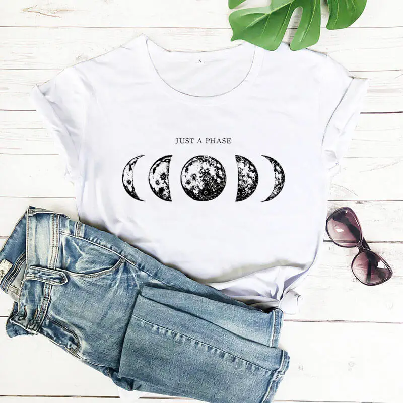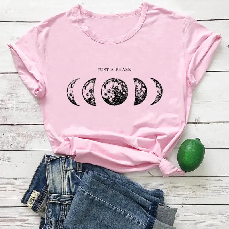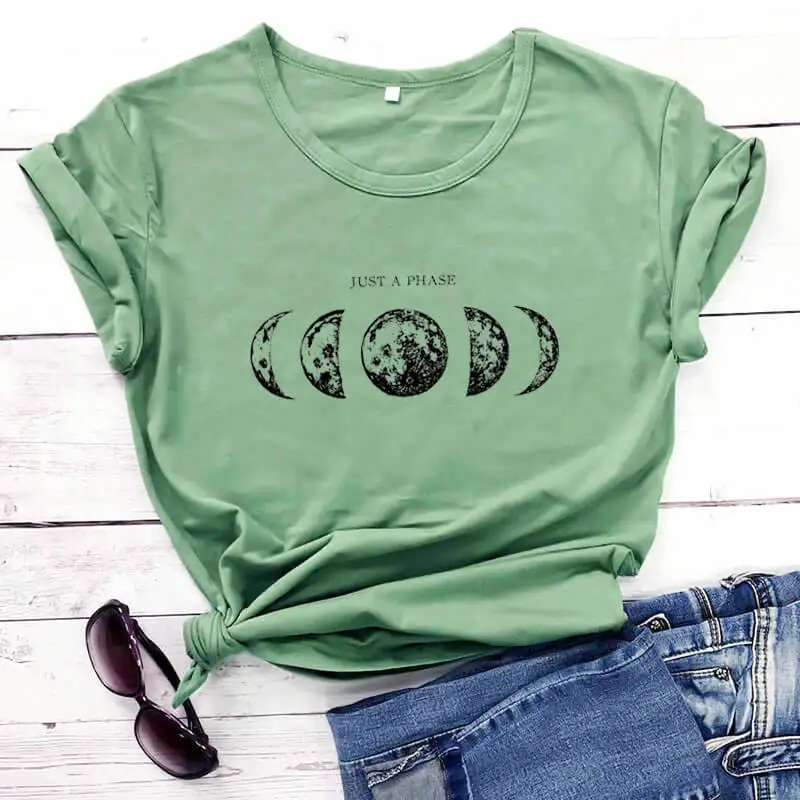 Футболка с принтом Just a phase, женская летняя забавная футболка из 100% хлопка, футболки с Лунной Луной и планетой