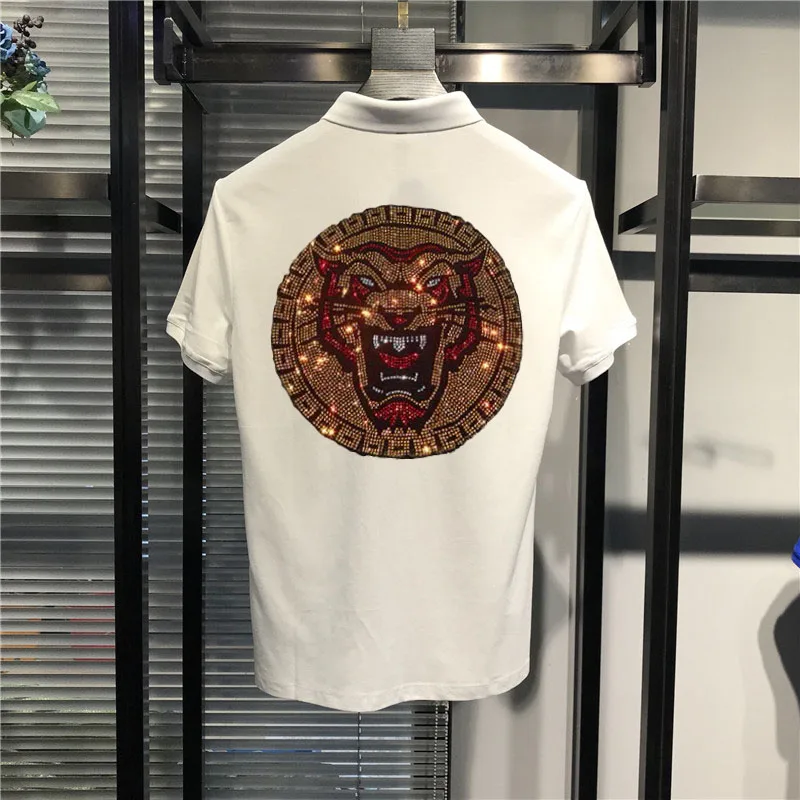 Мужские рубашки-поло, брендовая одежда, новая летняя рубашка с коротким рукавом, мужская хлопковая рубашка, популярная мужская футболка, стиль Стразы, размеры до 4XL