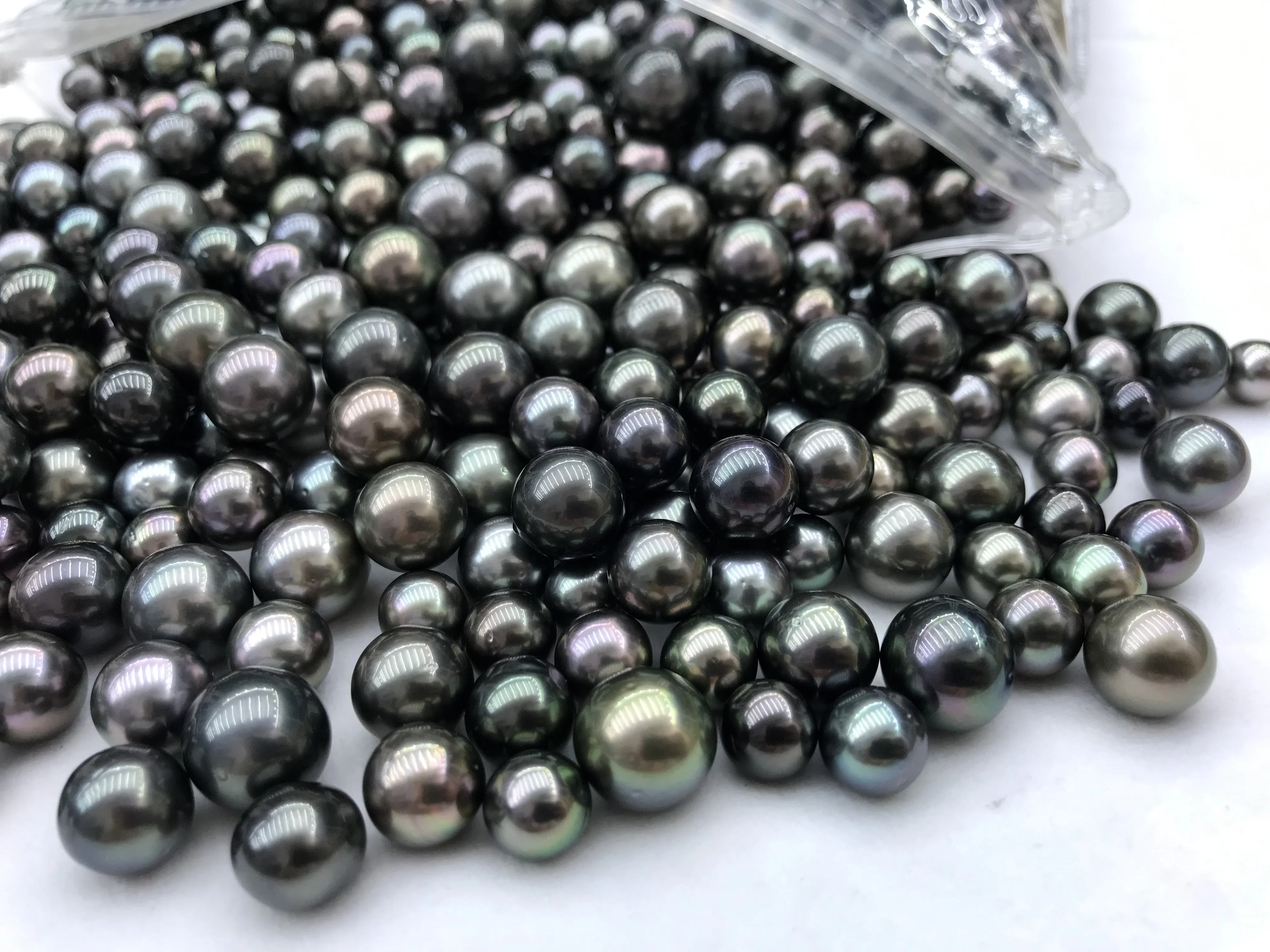Жемчужные бусины сделай сам, 9-14 мм, хороший блеск, круглый жемчуг АА Таити, 100% натуральный черный жемчуг Таити, отверстие или без