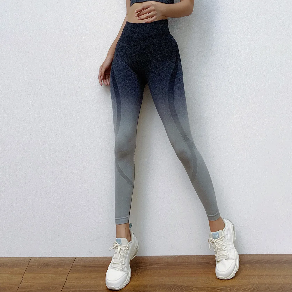 Эластичные бесшовные леггинсы с высокой талией для йоги, для занятий в тренажерном зале, с эффектом омбре, 2020