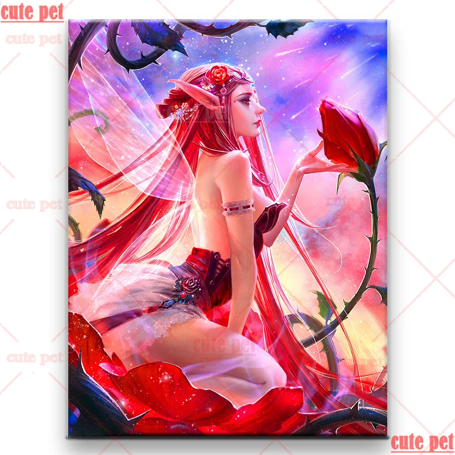 DIY Алмазная вышивка elf girl 5D алмазная живопись цветок фея вышивка алмазами Стразы Алмазная мозаика пазл домашний декор