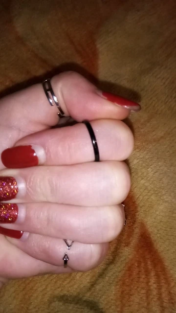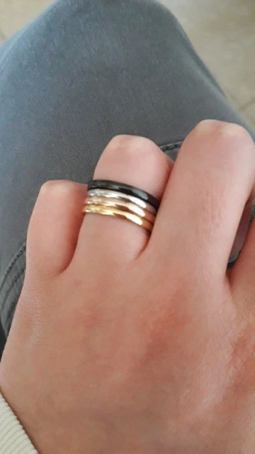 Кольца очень красивые! Я удивлен, как красиво они выглядят, и Таблица очень точная! Первый раз, когда я надеваю кольца, эти большие и милые! Gli anelli sono carinissi mi, mi ha sorpreso quanto siano ben fatti e la tabella delle mi sure Je esatta!