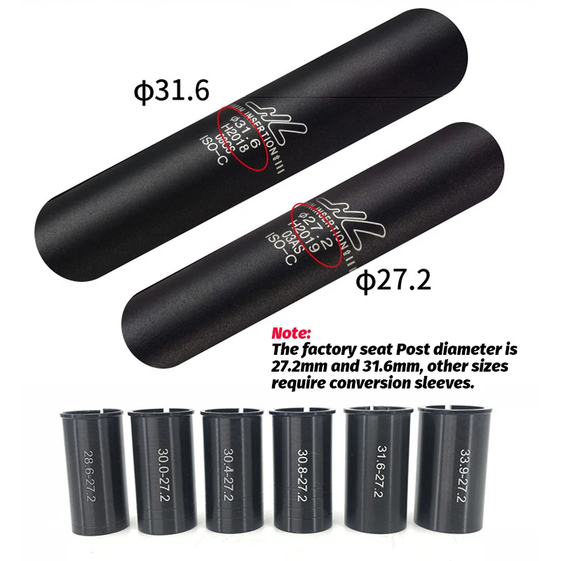 Примечание: Подставка для сидений размером 27,2 мм и 31,6 мм являются оригинальными заводскими размерами, а остальные размеры должны использоваться с редукционными рукавами.