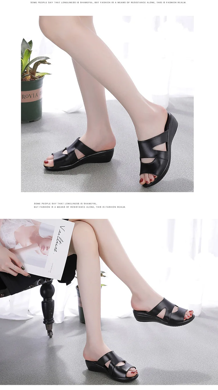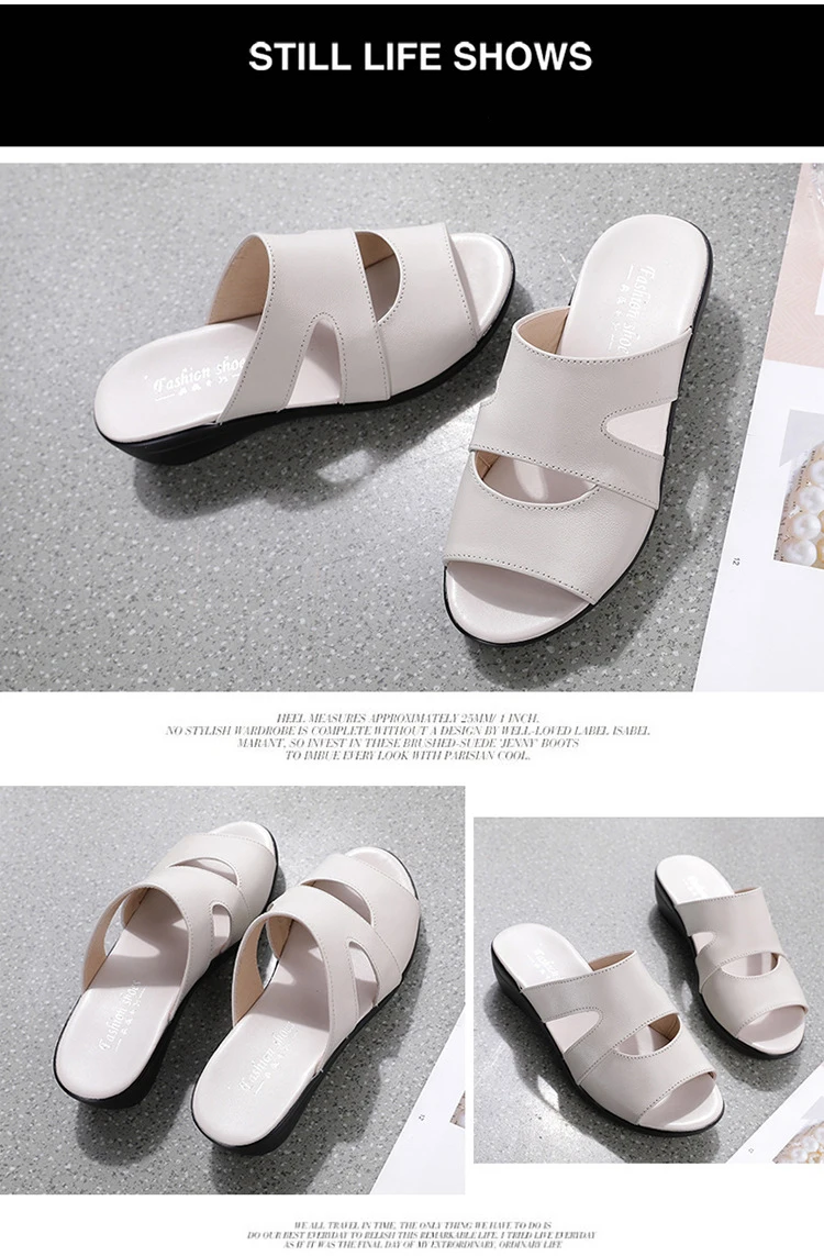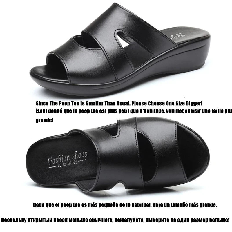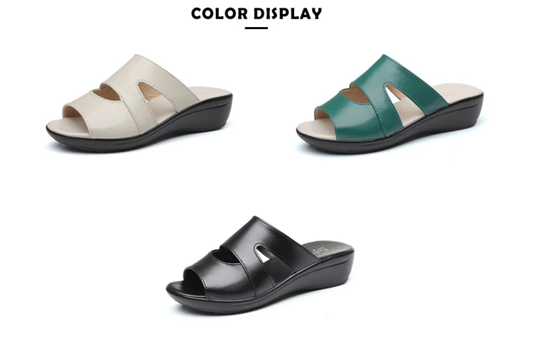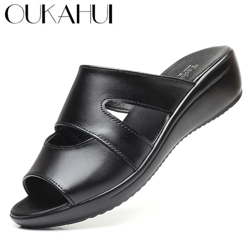 OUKAHUIлетние женские босоножки из натуральной кожаные шлепанцы; Однотонные уличные шлепанцы на танкетке 3,5 см с открытым носком; Размеры 35-43