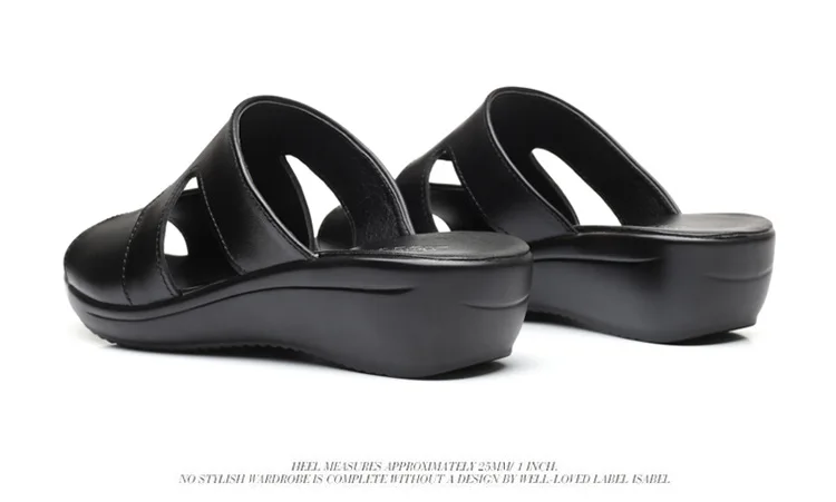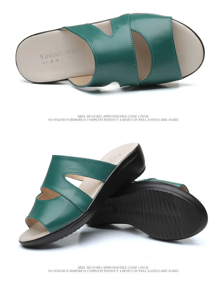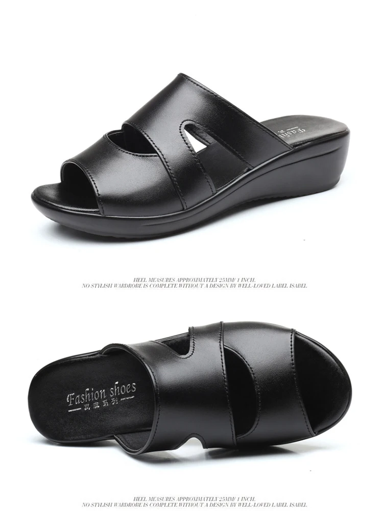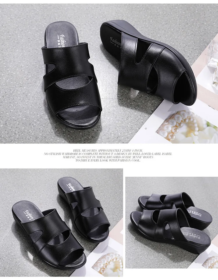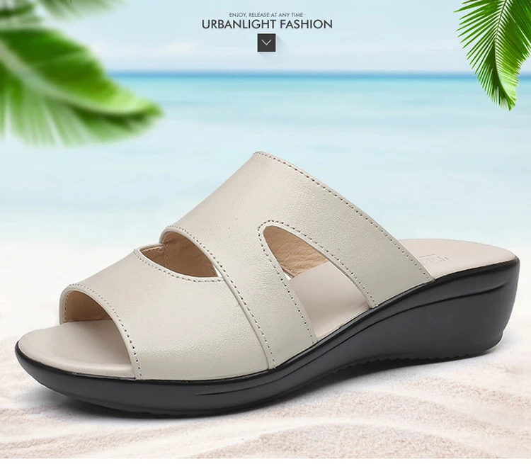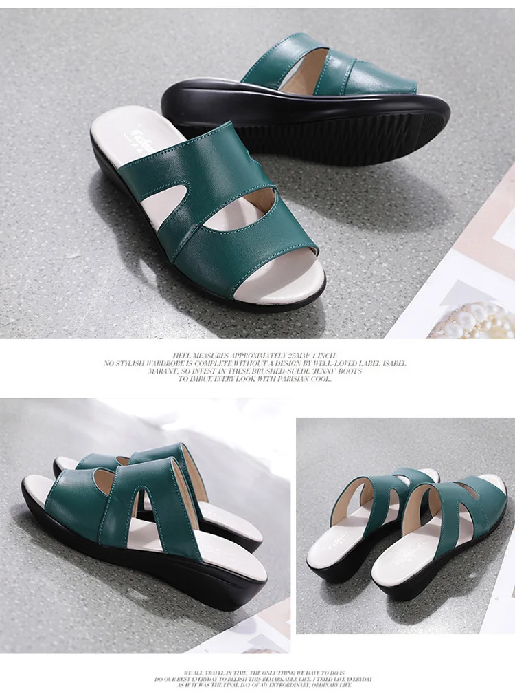 OUKAHUIлетние женские босоножки из натуральной кожаные шлепанцы; Однотонные уличные шлепанцы на танкетке 3,5 см с открытым носком; Размеры 35-43