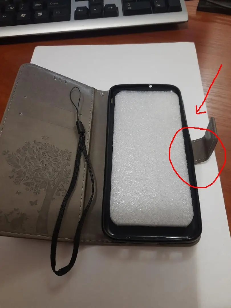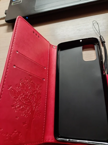 Быстрая доставка, на вид чехол очень достойный, папа любит такие вещи. Полиуретан на кожу совсем не похож, но за такие деньги норм. Внутри отделение для визиточек. Даже ремешок прилепили. Магнит настолько сильный, что на хлястике от него вмятины.