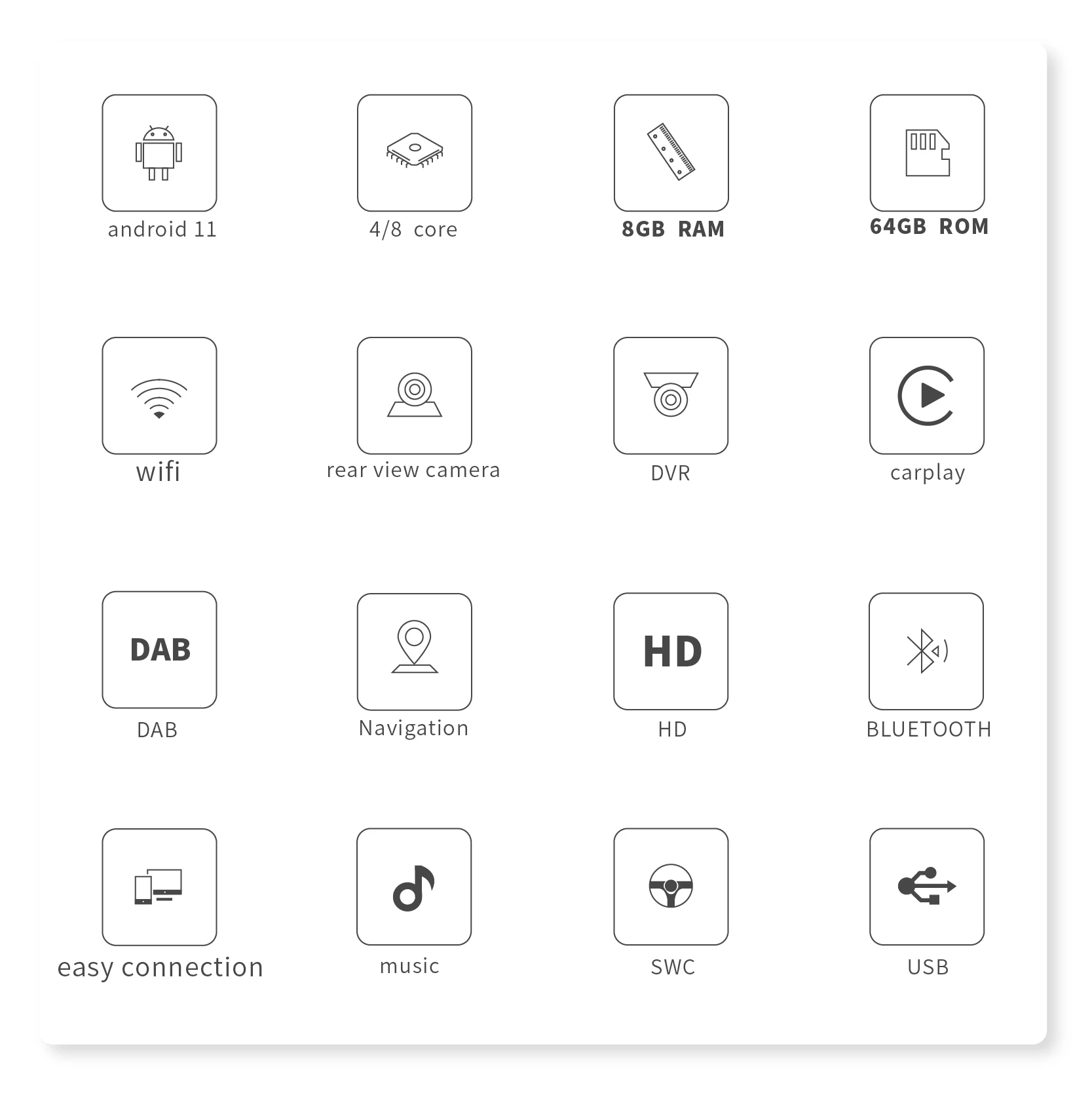 15.Дисплей главного меню DIY: Вы можете перетаскивать Панель поиска, настройки прогноза погоды, музыку/Радио/BT-стерео плеер, приложения или другие закладки в главном меню для отображения