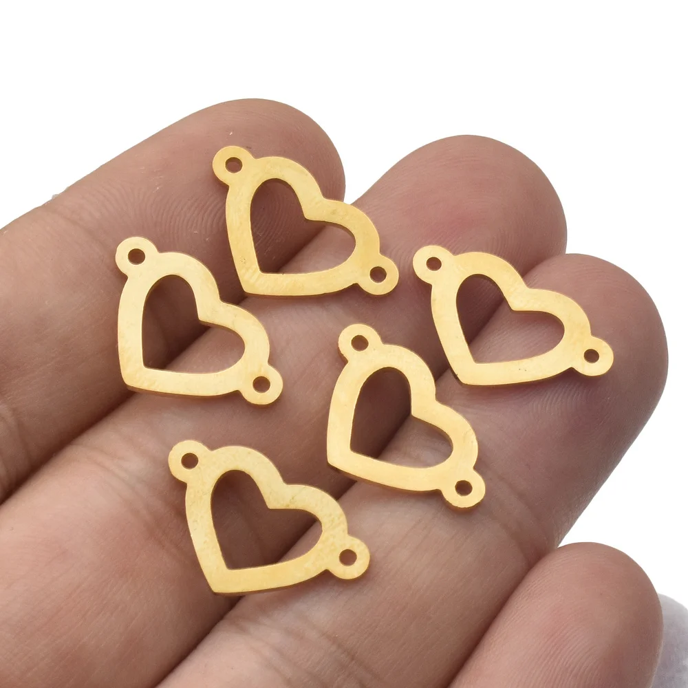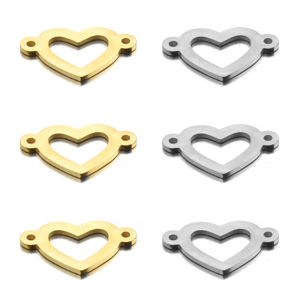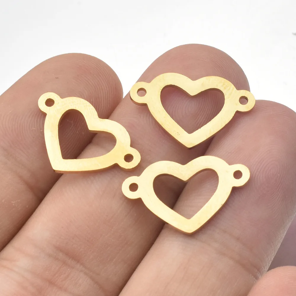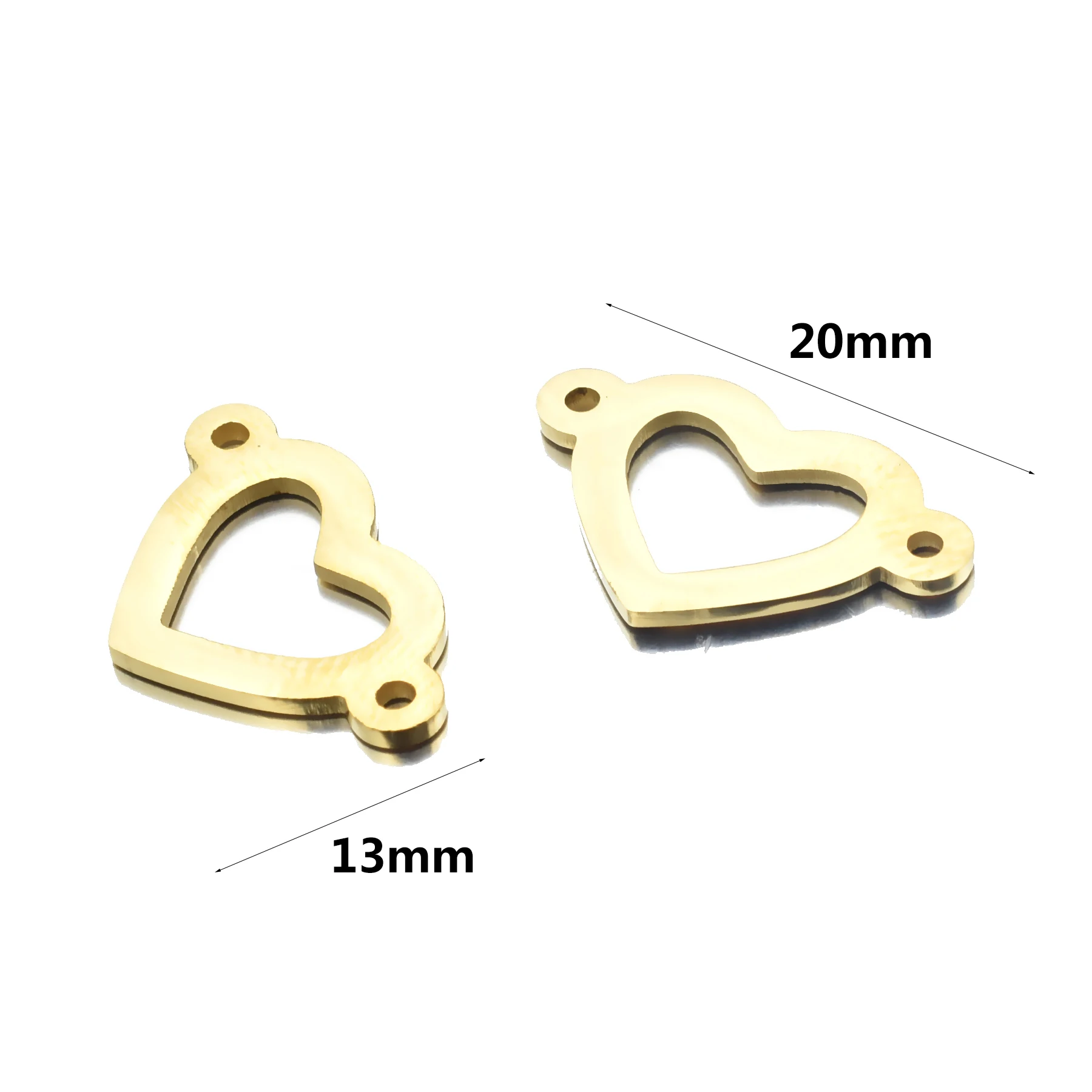 10 шт.лот 13х20 мм разъем из нержавеющей стали с золотым сердечком для браслета, ожерелья, Полые Подвески, фурнитура для самостоятельного изготовления ювелирных изделий