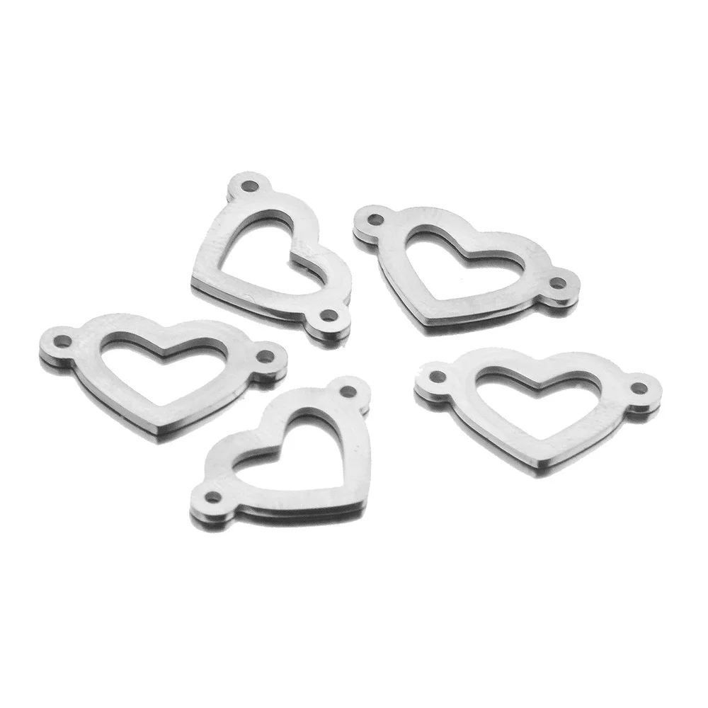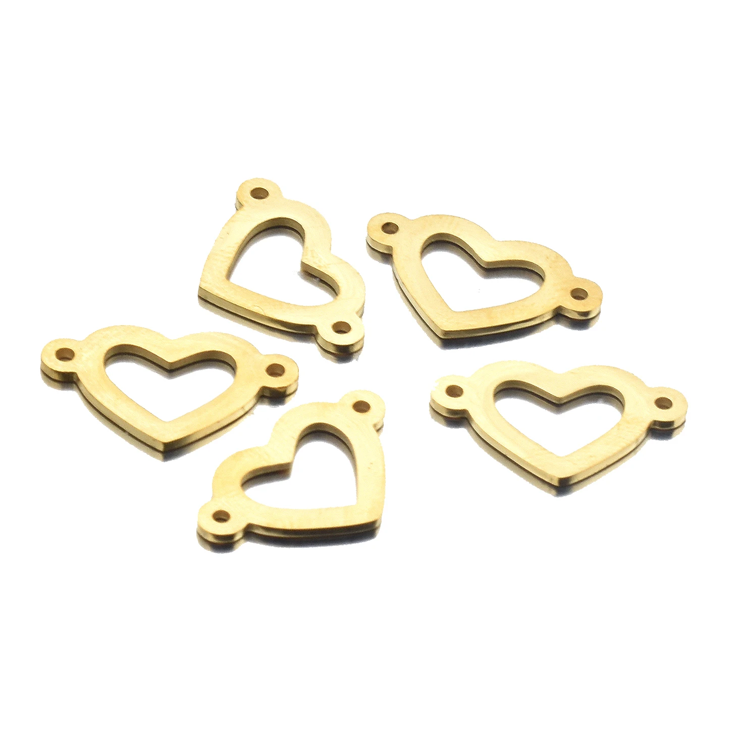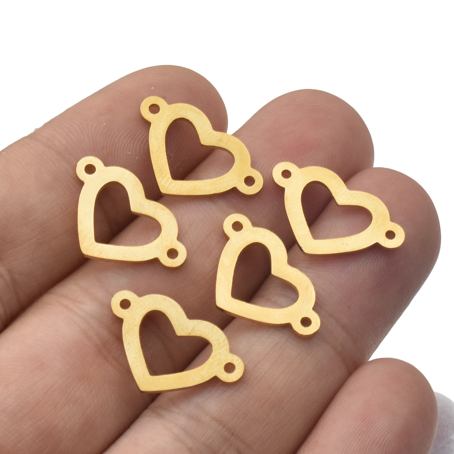 10 шт.лот 13х20 мм разъем из нержавеющей стали с золотым сердечком для браслета, ожерелья, Полые Подвески, фурнитура для самостоятельного изготовления ювелирных изделий