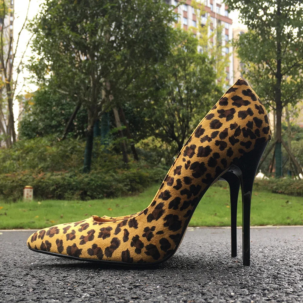 Замши леопардовой раскраски обувь унисекс Для женщин пикантная обувь на очень высоком каблуке (13 см) SM вечерние Фетиш на высоком каблуке для трансвеститов перетащите Queen размера плюс 48
