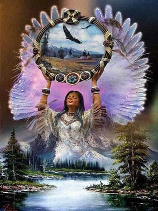 Алмазная 5d-картина "сделай сам", американская и индийская девушка, Ловец снов, вышивка крестиком из смолы, полноформатная Алмазная картина, птицы, озеро, 3d искусство