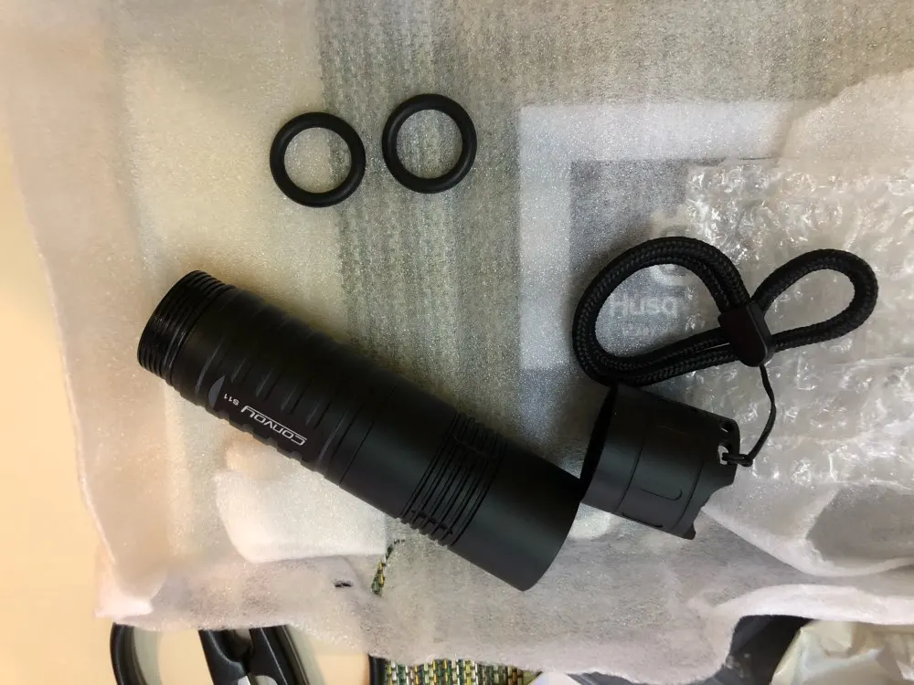 Доставка около месяца до Волгоградской области, упаковка вполне достойная - пупырчатый пакет, в пакете оба фонаря, завёрнутых в два слоя опять же пупырки. Сами фонари упакованы в пакетик из пупырки + мягкая прокладка на стекло и простую картонную коробку белого цвета, на которой указана только цветовая температура светодиода. Внутри каждого фонаря лежат по два переходных кольца для 18650 аккума и ещё продавец положил 2 магнитных кольца для установки в крышку, правда они для младших моделей, которые под 18650, сюда маловаты, однако применение уже нашёл, продавцу большое спасибо! Теперь по свету: у 50.2 диода цвет ощущается как 3000К (в сравнении с бытовыми светодиодными лампами) особенно на экране и младших режимах, при работе на местности и тем более в старших режимах это практически незаметно и цвет тоже похож на 4000К, дальность метров 200-250, засвет достаточно широкий и ровный.
