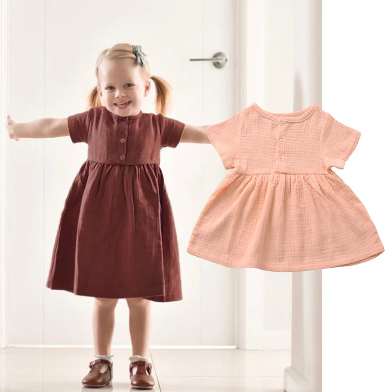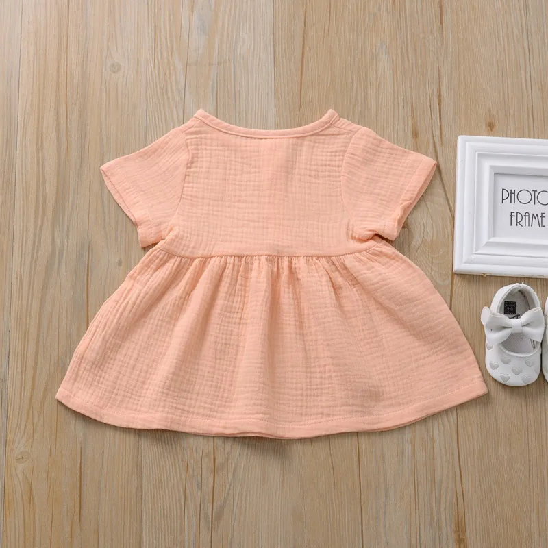 Kids Summer Pure color Baby Girls 6M-3T Cotton Linen Dress Fashion ...