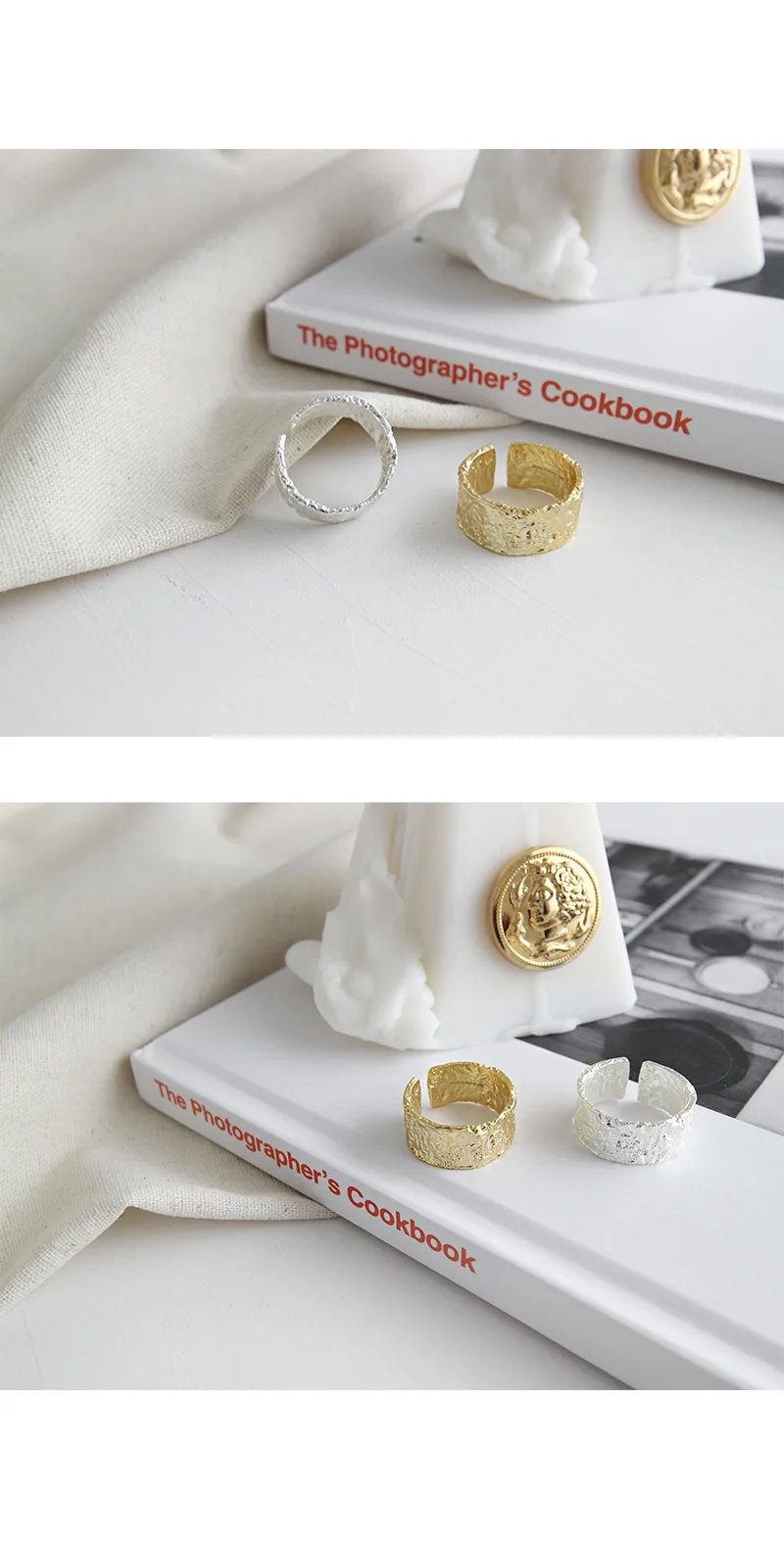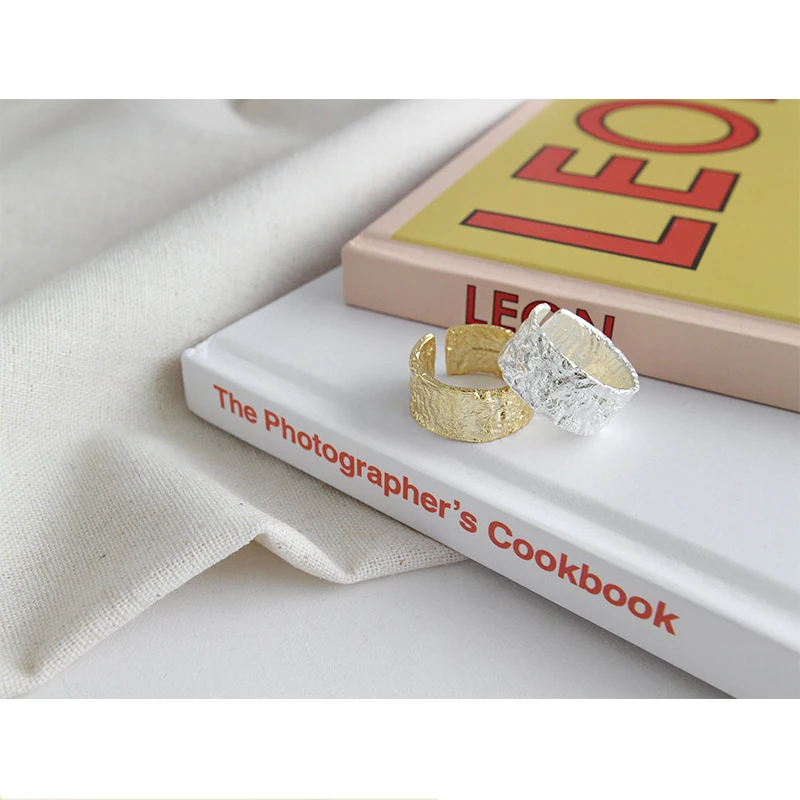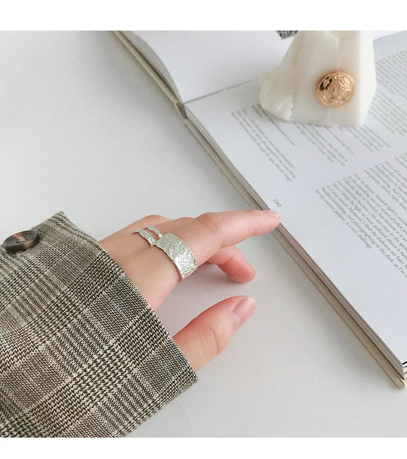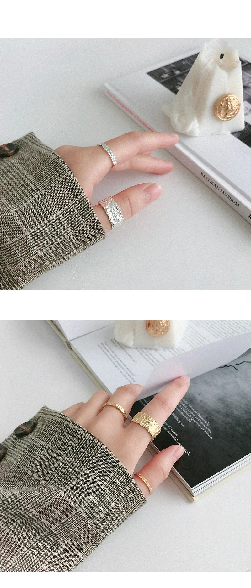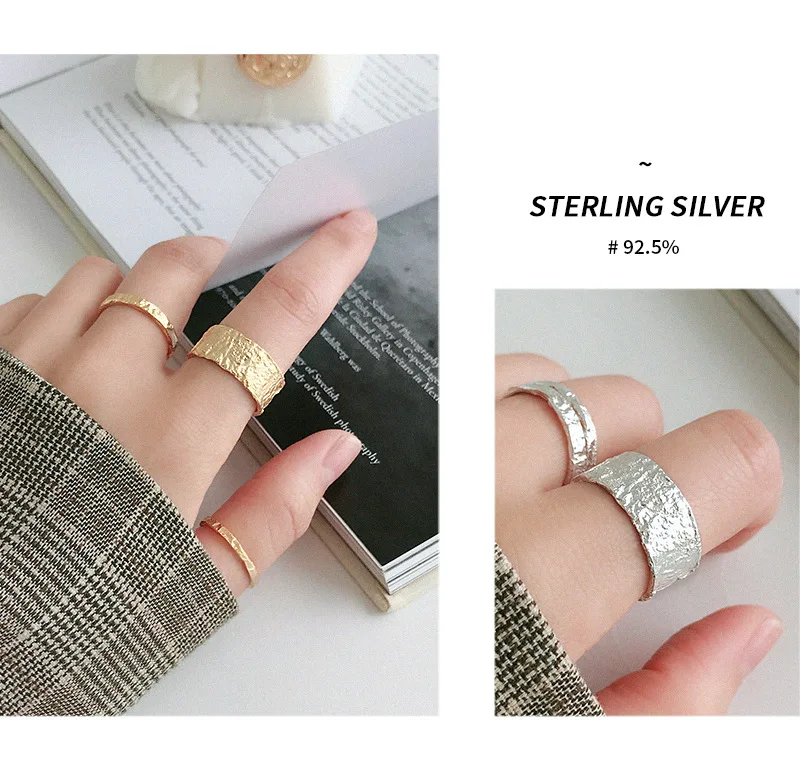 AsinLove Настоящее Стерлинговое Серебро 925 пробы молотковые широкие кольца неправильной формы вогнуто-Выпуклое Открытое кольцо с поверхностью из фольги ювелирные изделия 2020 новый рок