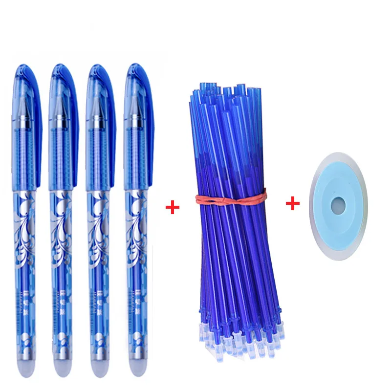 Количество: 25 шт./компл. (4 шт. стираемая гелевая ручка + 20 шт. стержень со стираемыми чернилами + 1 шт. ластик)