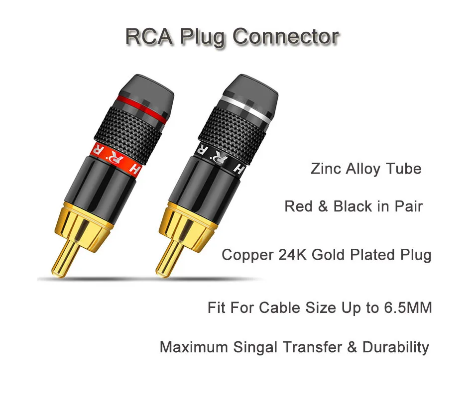 12 шт.лот RCA штекер Высокое качество позолоченный паяльник разъем спикер кабель провода разъем 6 пар красный + черный