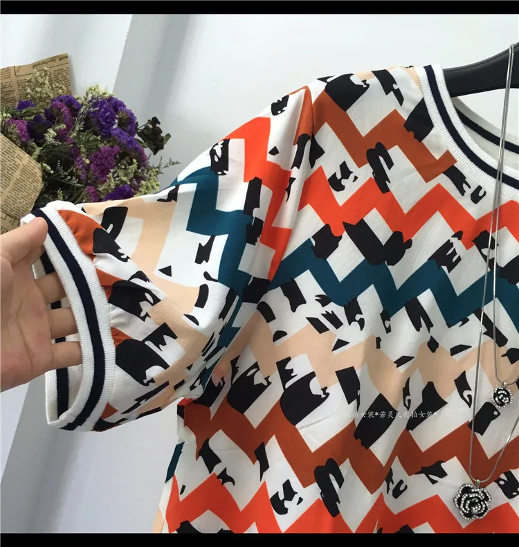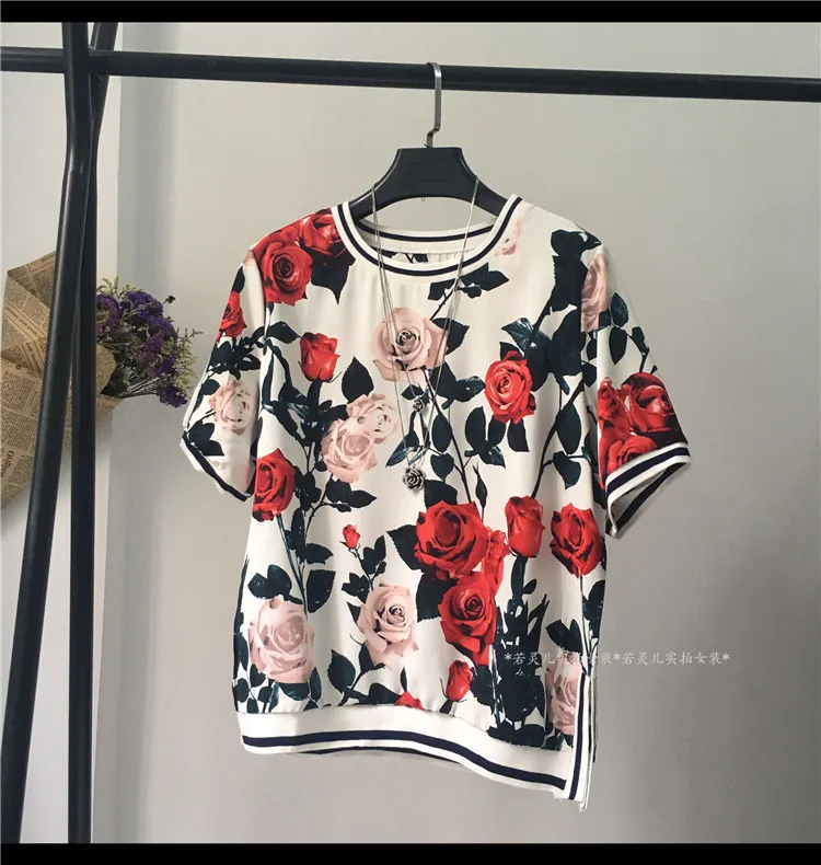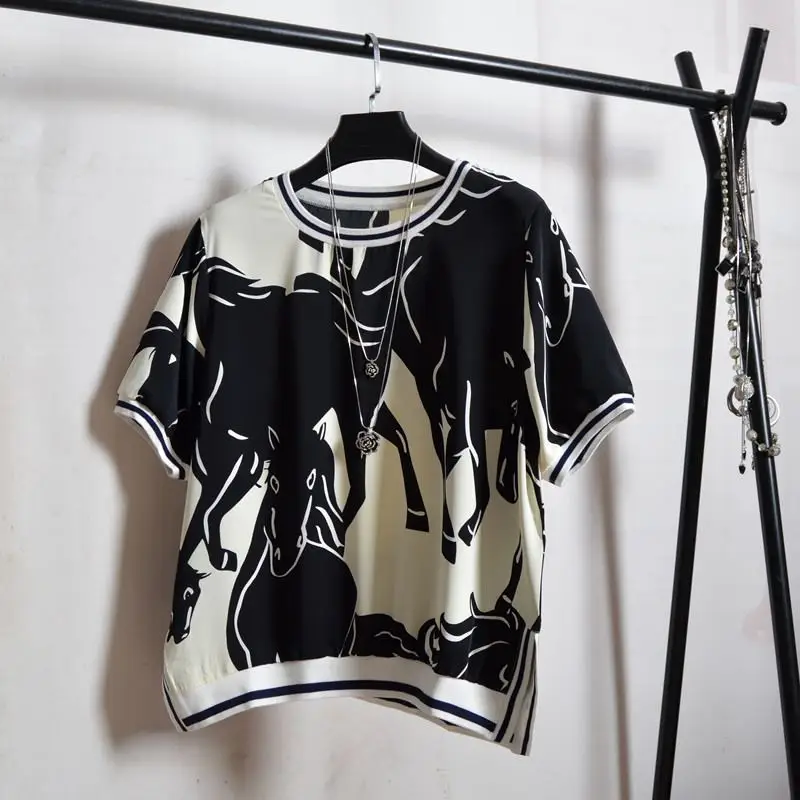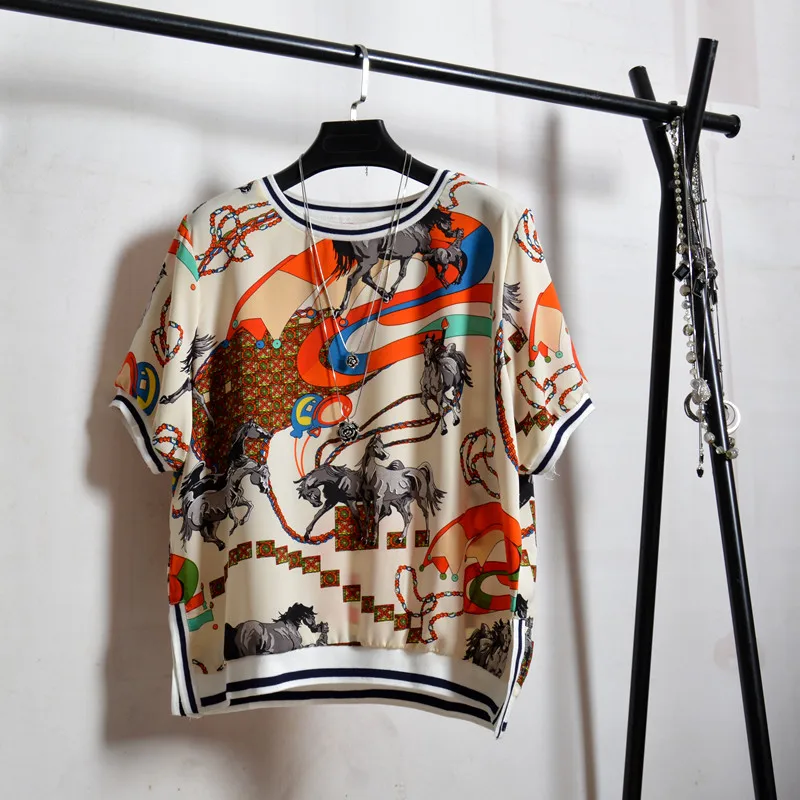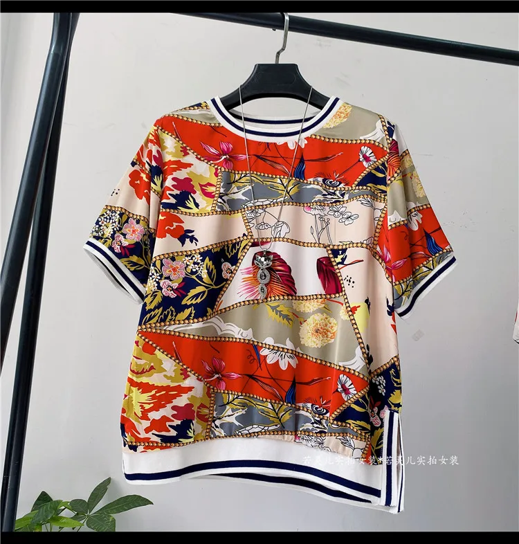 Женская блузка с коротким рукавом, летняя, свободная, с Европейским принтом