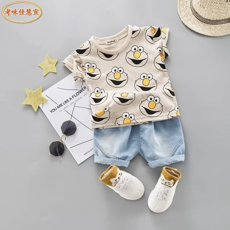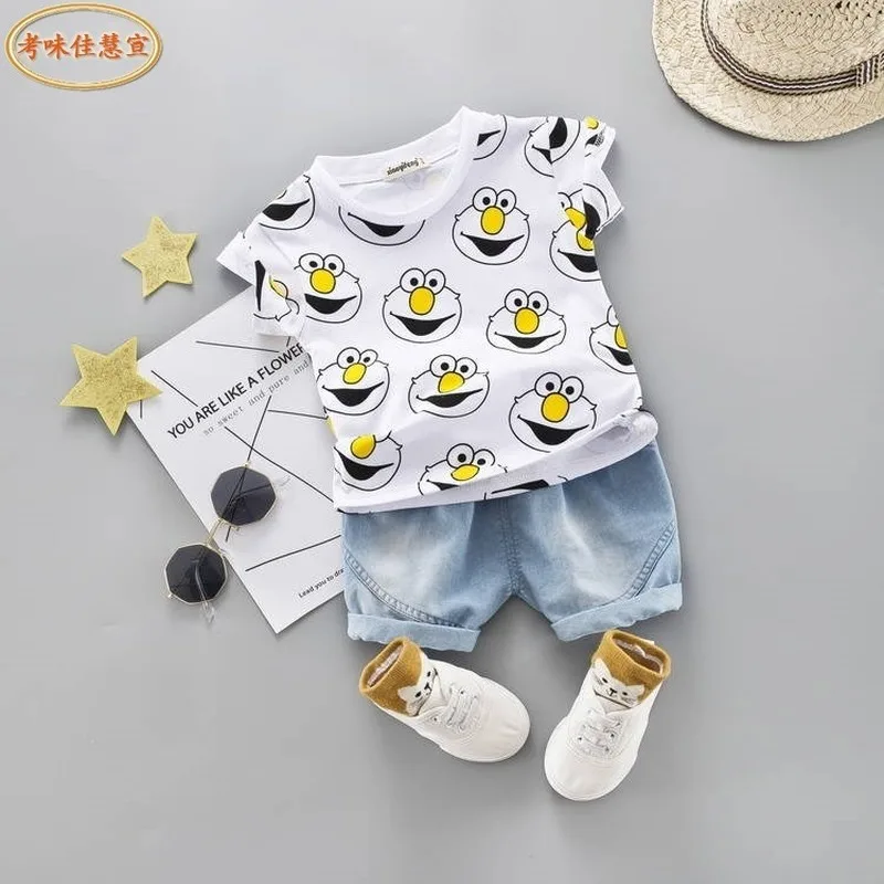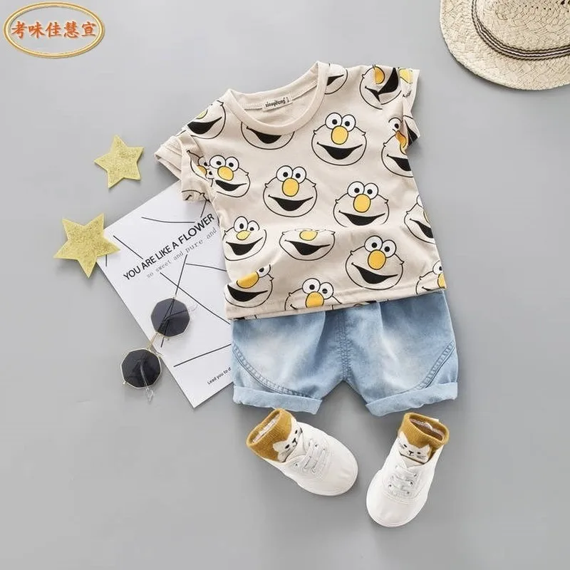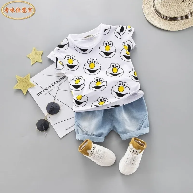 Комплект одежды для маленьких мальчиков, милая летняя футболка, мультяшная детская одежда для мальчиков, шорты, костюм для детей, наряд, джинсовый наряд, одежда для мальчиков