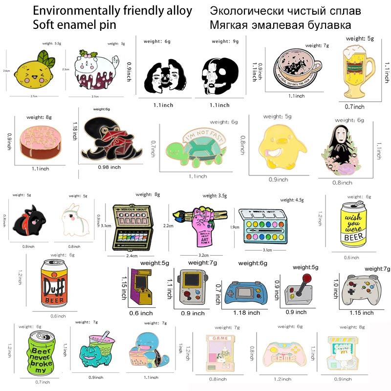 XEDZ Мультяшные милые животные, лошадь, кошка, черепаха, желтая утка, динозавр, игровой автомат, осьминог, эмаль, бриллиантовая брошь, подвеска для джинсовой одежды