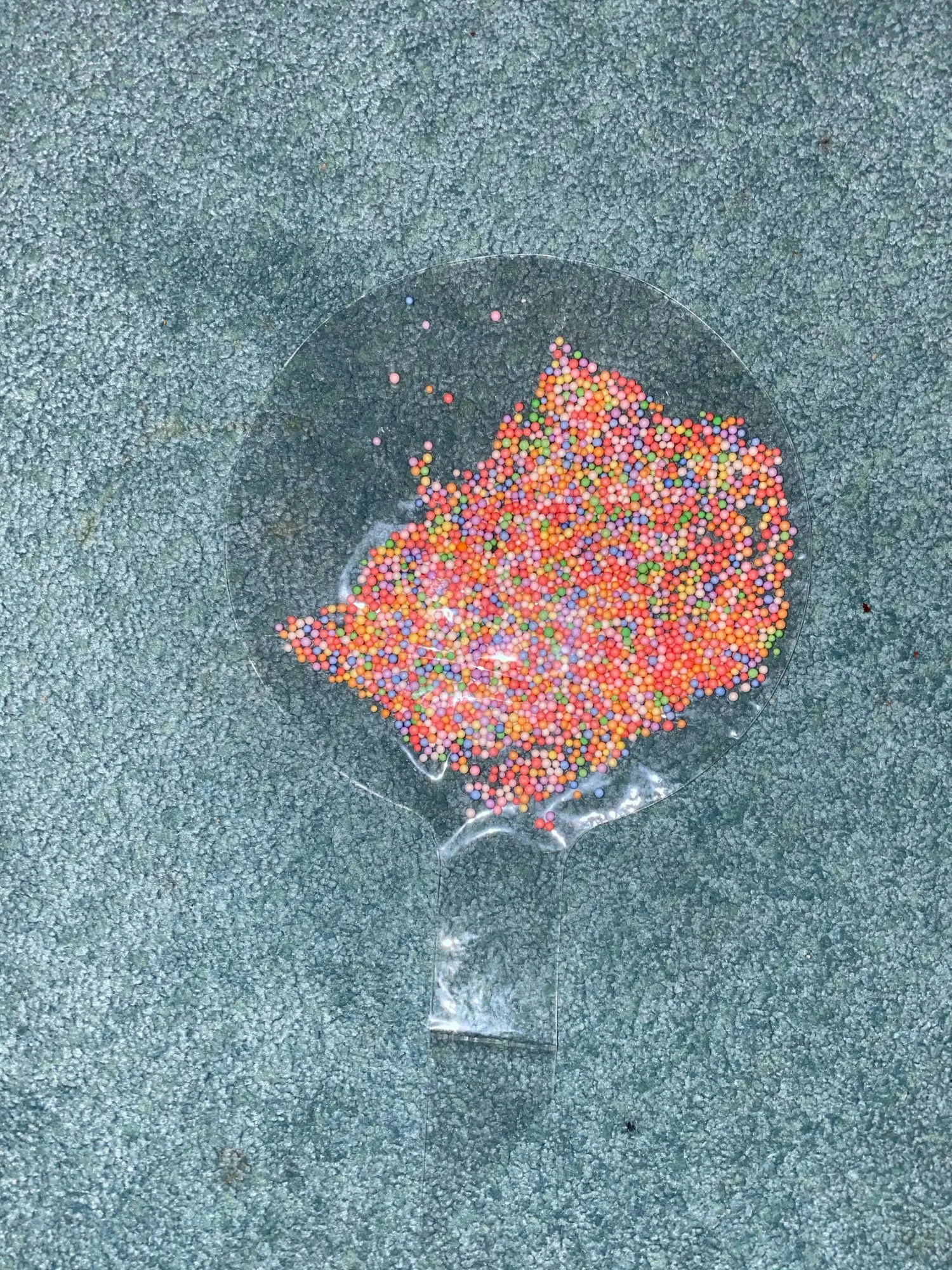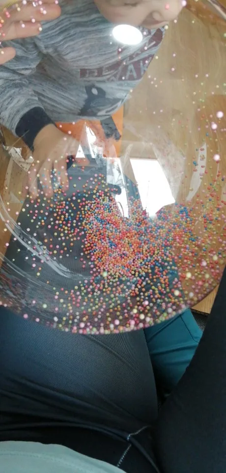 Оригинальный и красивый воздушный шар. Не так много маленьких шариков, как на картинке, но все равно забавно иметь некоторые и видеть их в ловушке в воздушном шаре. Я использовал ручной насос для велосипеда, и он работает. Вам просто нужно плотно держать пластик во время откачки. Затем вы можете крутить шар пять или шесть раз, чтобы воздух не ушёл. Это довольно прочный, почти как игрушечный шар для игры в футбол, но очень легкий. Он может немного подпрыгивать! Мой ребенок и я веселились с ним.