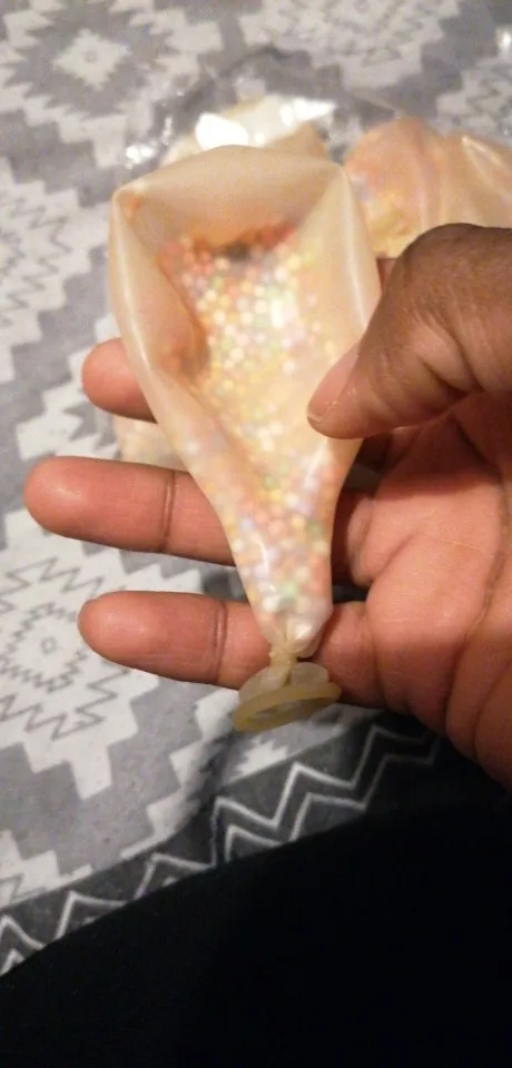 Шарики прийшли, наповнені дрібними кульками, прозорі, все добре, надувати ще не пробувала, замовляти з цього магазину можна