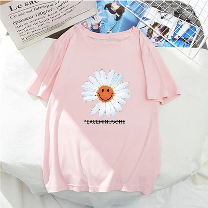 Новинка 2020, Kpop Bigbang G-dragon GD PEACEMINUSONE, футболка с надписью и маргариткой, футболка с коротким рукавом в стиле Харадзюку, весналето, пуловер, Топ