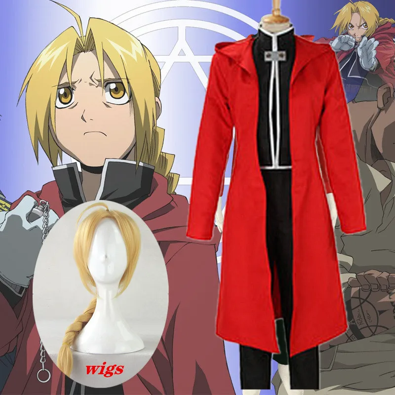 Костюм Эдварда Элрика из аниме цельнометаллический Алхимик, косплей с париками, пальто с капюшоном из стального металла, на заказ, полный комплект