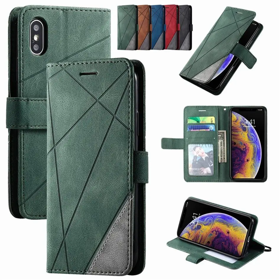 Contrast Color PU Leather Magnet Phone Case Man Lady Cover Holster Bag