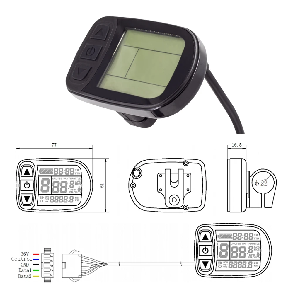 -Дисплей KT LCD5 EBike только для контроллеров серии KT. Не подходит для других контроллеров. -Если вы используете один датчик Холла PAS, настройка C1 = 2 -Если вы используете двойной датчик Холла PAS, настройка C1 = 7