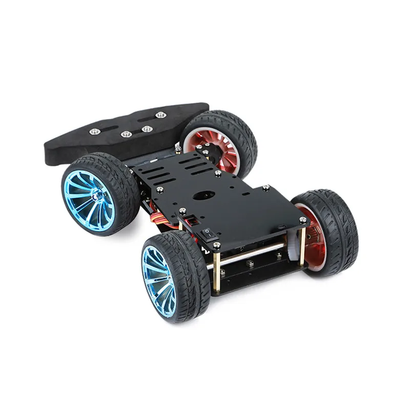 Это новое 4-колесное автомобильное шасси, и обычный 4-колесный привод отличается от этого автомобиля с задним приводом плюс передний рулевой механизм для достижения автомобиля вперед, назад, поворот влево и вправо. И профессиональный принцип дистанционного управления, использование двух стержней через сервопривод руля для управления направлением автомобиля. Кроме того, был изменен механизм рулевого управления заднего колеса. Алюминиевая фиксирующая деталь объединена с двигателем, и двигатель плотно закреплен на приводном валу. В двигателе используется цельнометаллический мотор-редуктор. Если вы стремитесь к высокой скорости, используйте двигатель диаметром вала 25 мм. Заднее колесо оснащено двумя фланцевыми подшипниками для обеспечения более гибкого вращения двигателя. Из-за использования деталей из более драгоценного металла (подшипники, трансмиссия, шатун, металлический двигатель, рулевая чашка, многофункциональный кронштейн и т. д.), что дорого, пользователь может сравнить достоинства, конечно, на рынке также дешевле, чем шасси, Работа не на уровне. У нас есть только фиксированные монтажные отверстия для платформы arduino, если вы другие платформы, вам нужно пробивать отверстия или попробовать установить.