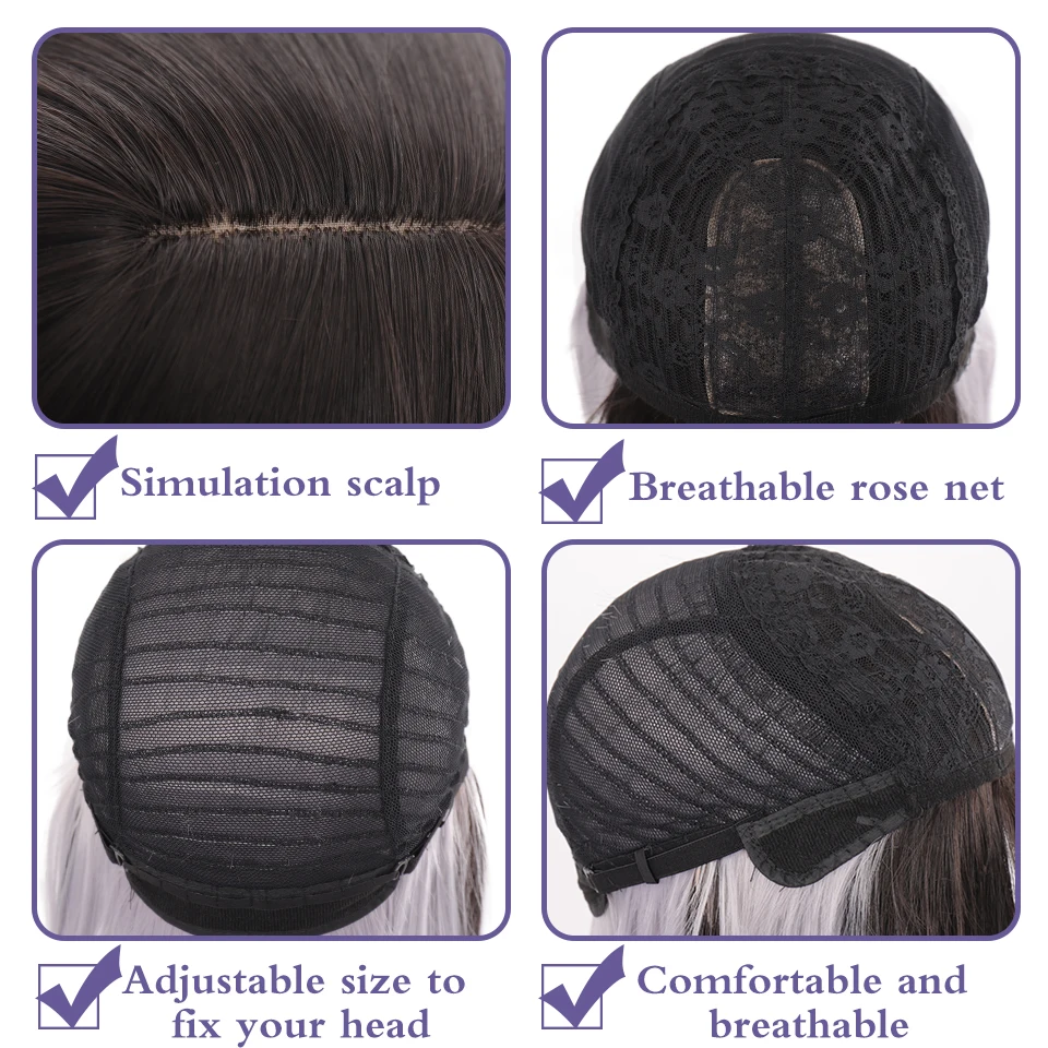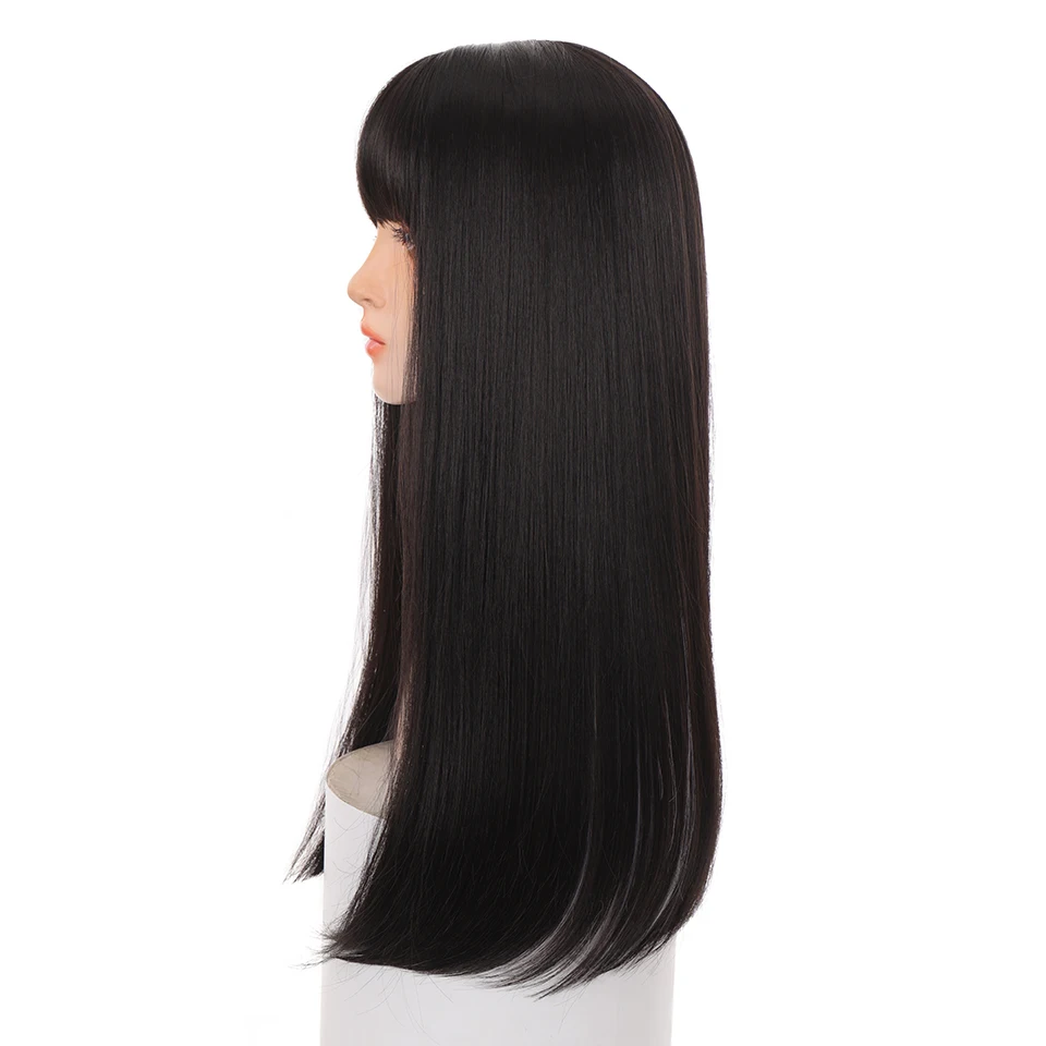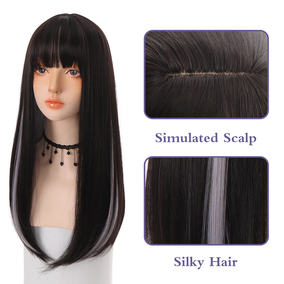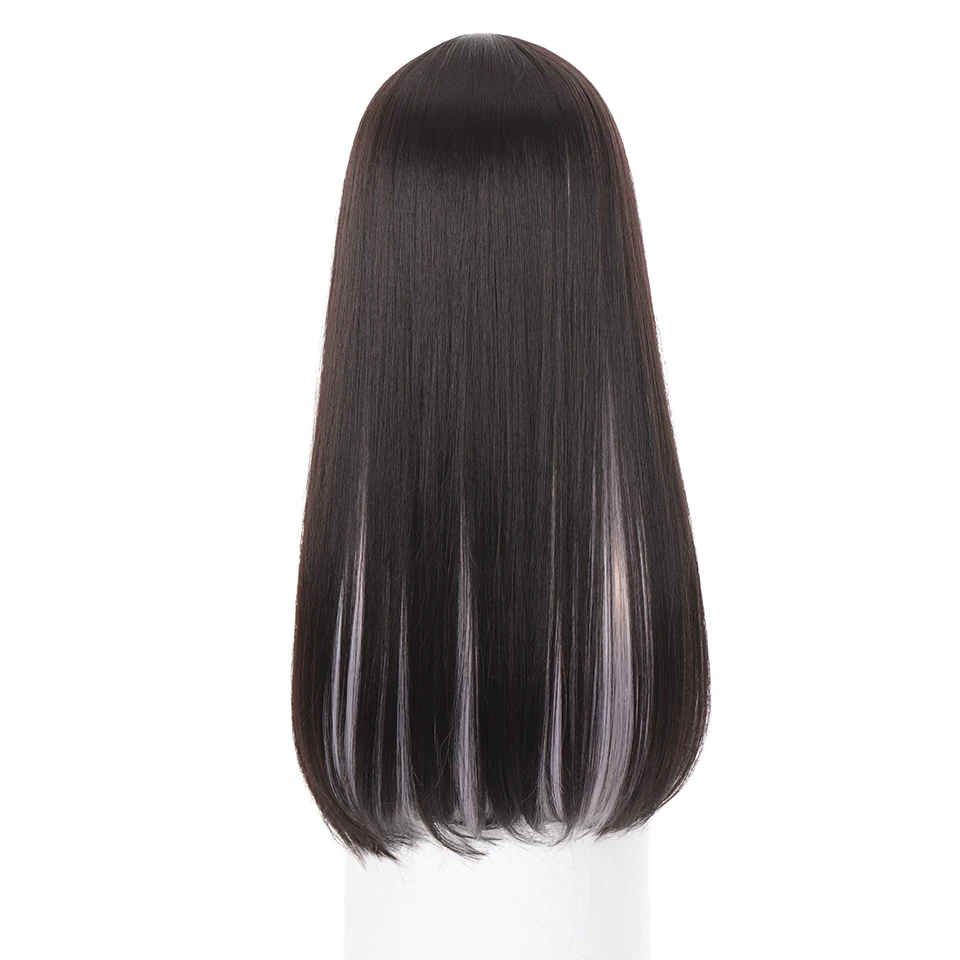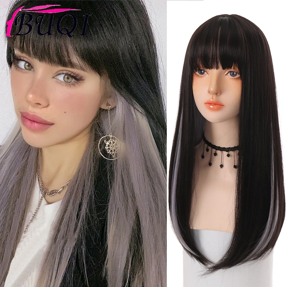 Искусственные волосы BUQI для косплея Лолиты, длинные парики с челкой, черные серые прямые парики для женщин, термостойкие волосы из волокна