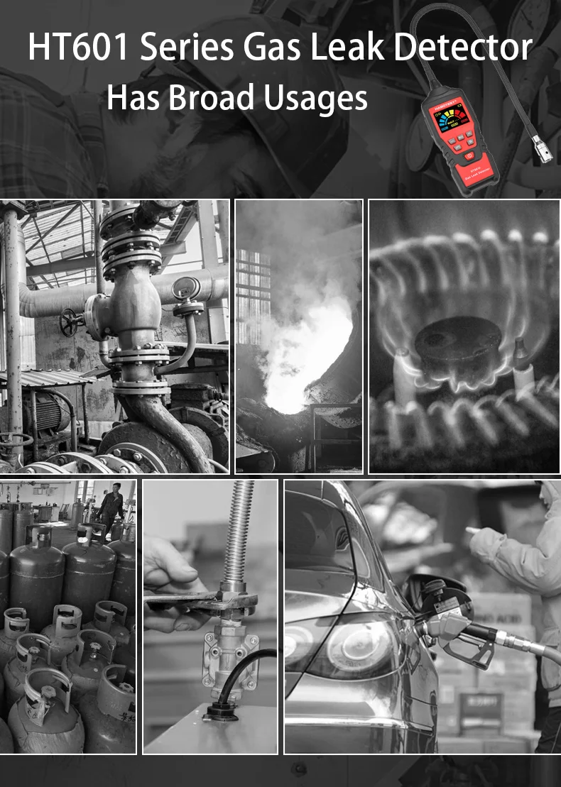Детектор Утечки горючих газов HT601, ручной газоанализатор, 0-9999 ...