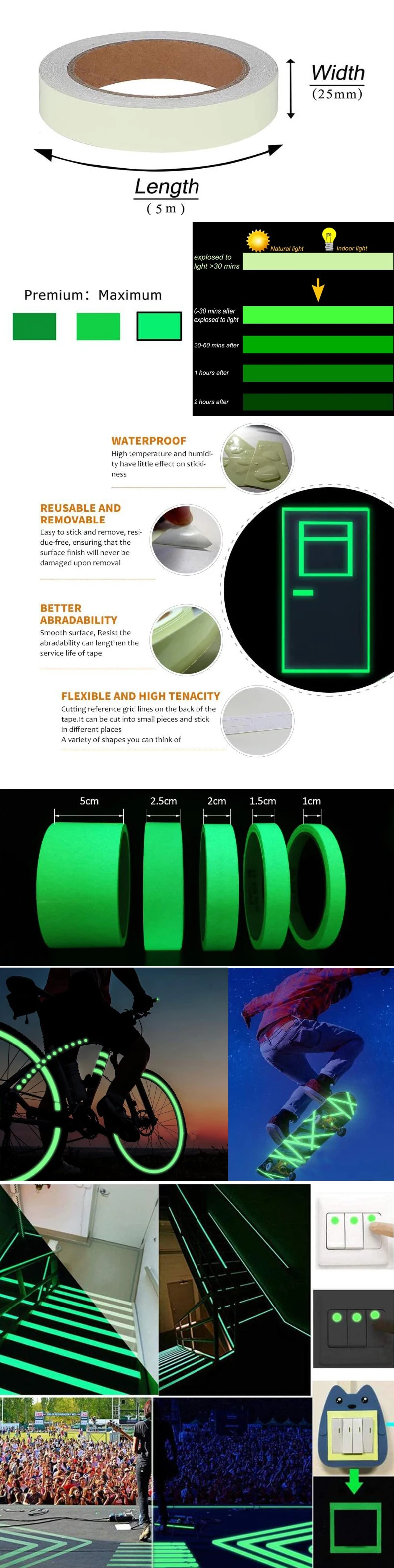 Зернистость, сильный клей, светящаяся лента Улучшает безопасность вашего места, как лестницы.