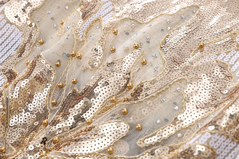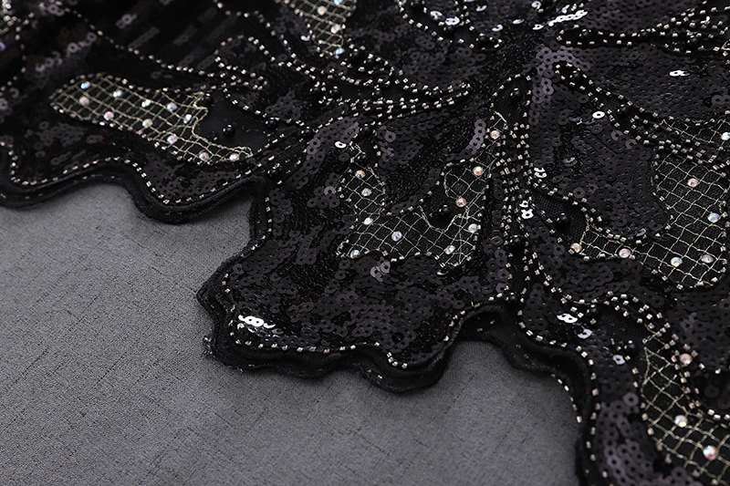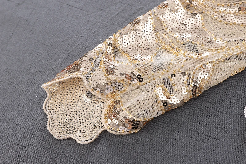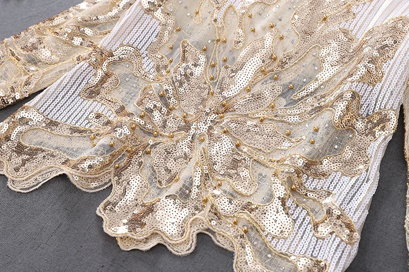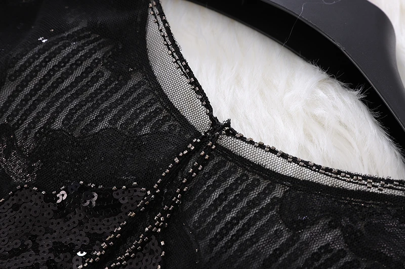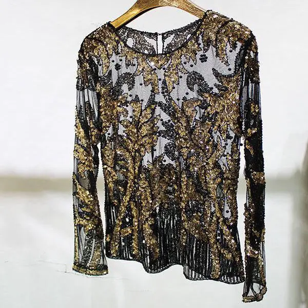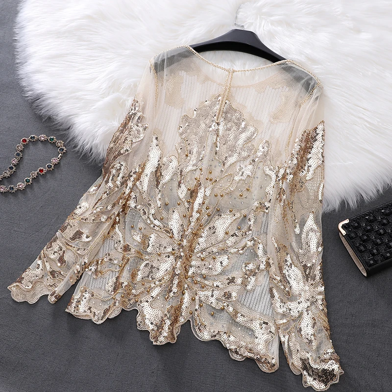 Женская винтажная кружевная блузка с бусинами и блестками, свободная блузка с круглым вырезом и длинными рукавами-лепестками, цвета шампанского, бежевый, черный, весна 98109