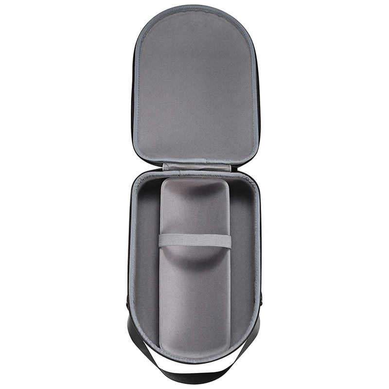 Сумка с жестким корпусом. Колонка с надетым силиконом хорошо помещается в сумку, по бокам остается место для кабелей и зарядного устройства. Ручка у сумки слабая - просто тонкая ленточка, хотелось бы улучшить, но на общее впечатление сильно не влияет.