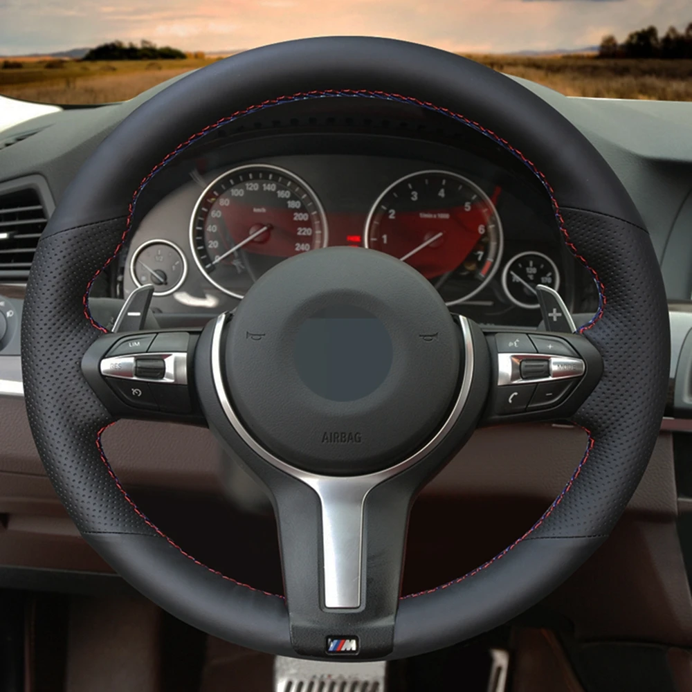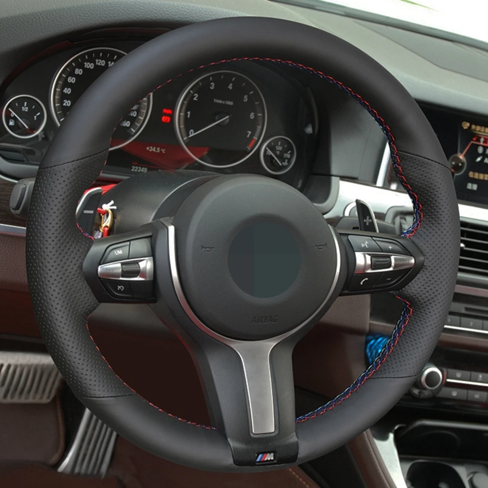 Искусственная кожа черного цвета для BMW M Sport F30, F31, F34, F10, F11, F07, X3, F25, F32, F33, F36, X1, F48, X2, F39, чехол рулевого колеса автомобиля