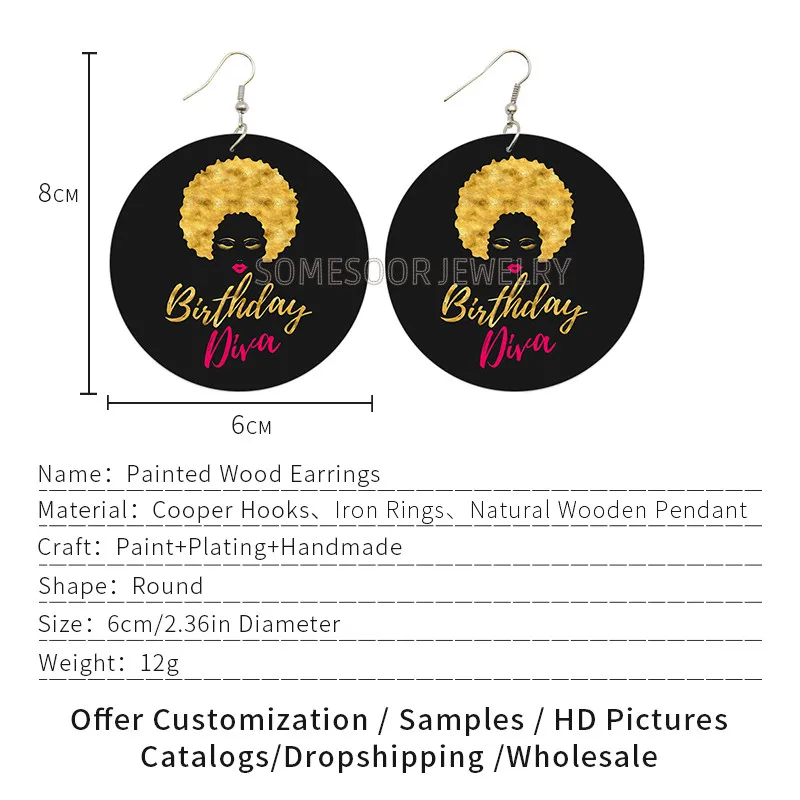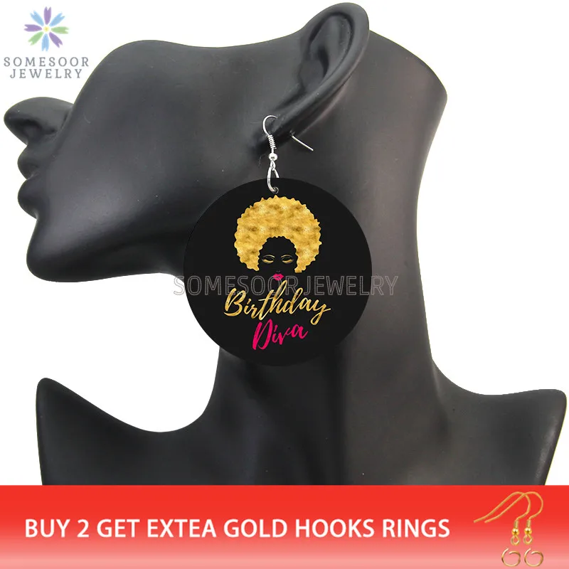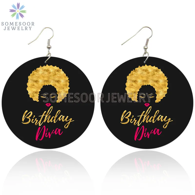 SOMESOOR меланин поппин королева вьющиеся деревянные висячие серьги...