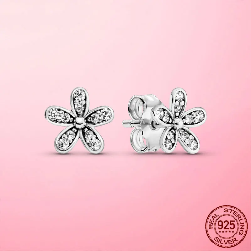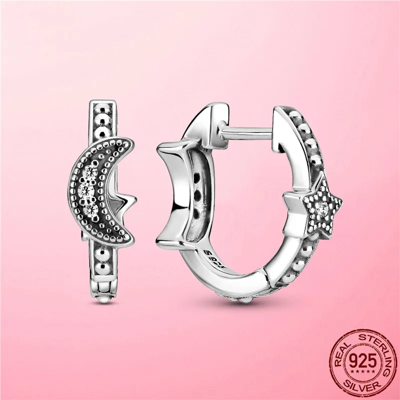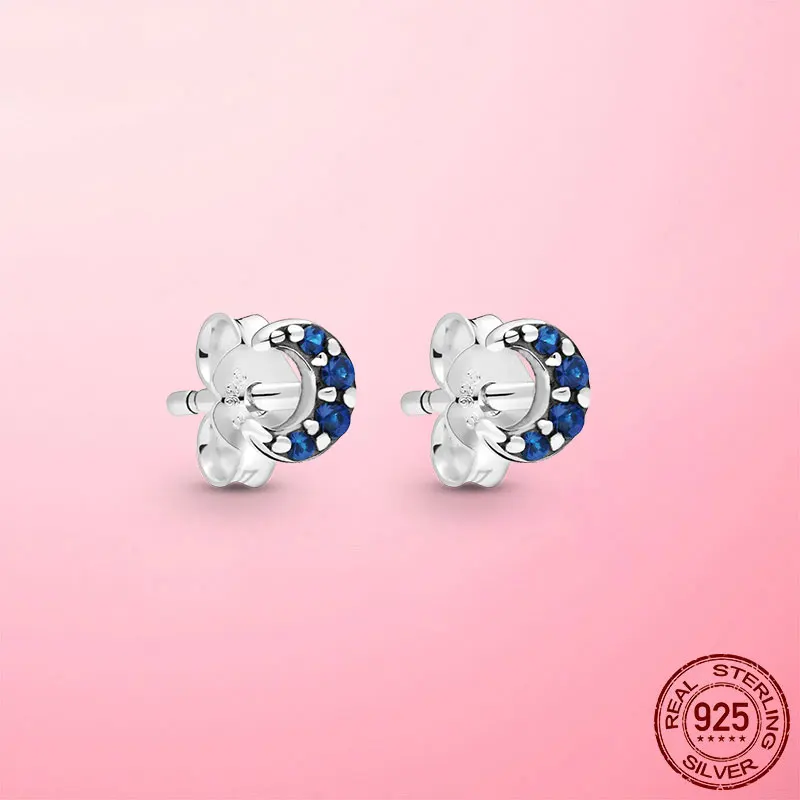 Серьги-гвоздики серебряного цвета с ромашками, Луной и звездой