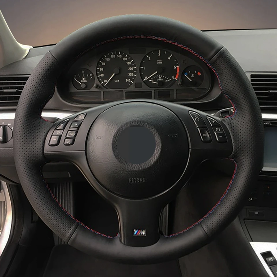 Чехол рулевого колеса автомобиля черная искусственная кожа ручной работы для BMW M Sport E46 330i 330Ci E39 540i 525i 530i M3 E46