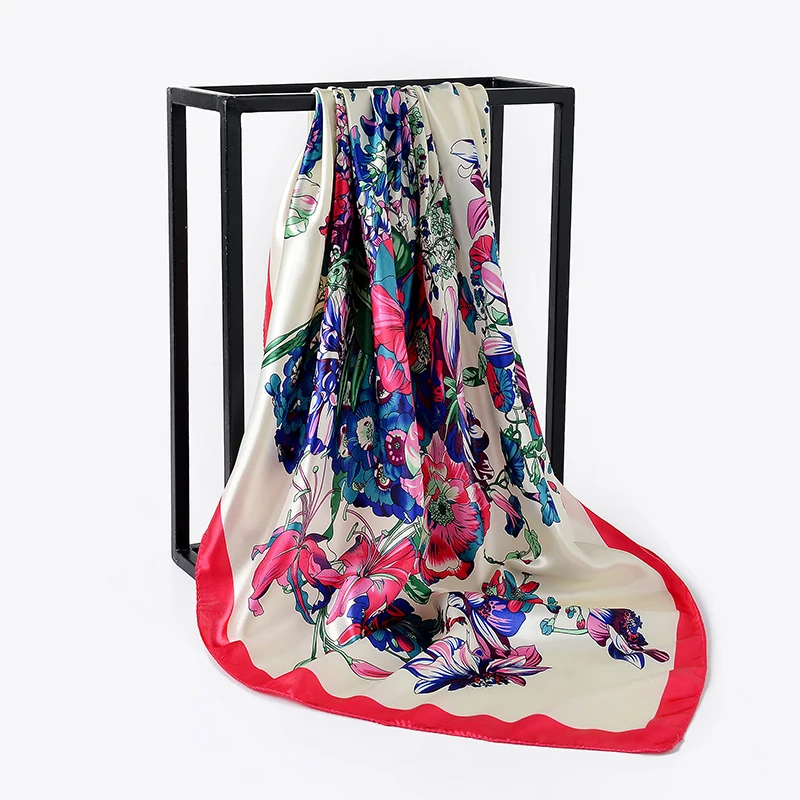 Золотой цвет женский квадратный хиджаб атласный шелковый шарф обертывание Осень Зима Sjaal Роскошные Большие атласные шарфы мусульманский головной платок 90*90 см