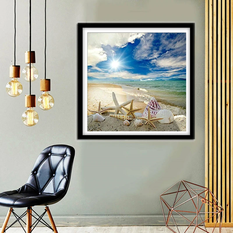 DIY пейзаж, картина, выложенная алмазами, полностью квадратная круглая пляжная картина с морским солнцем, стразы с алмазной вышивкой, Декор для дома, мозаика в подарок