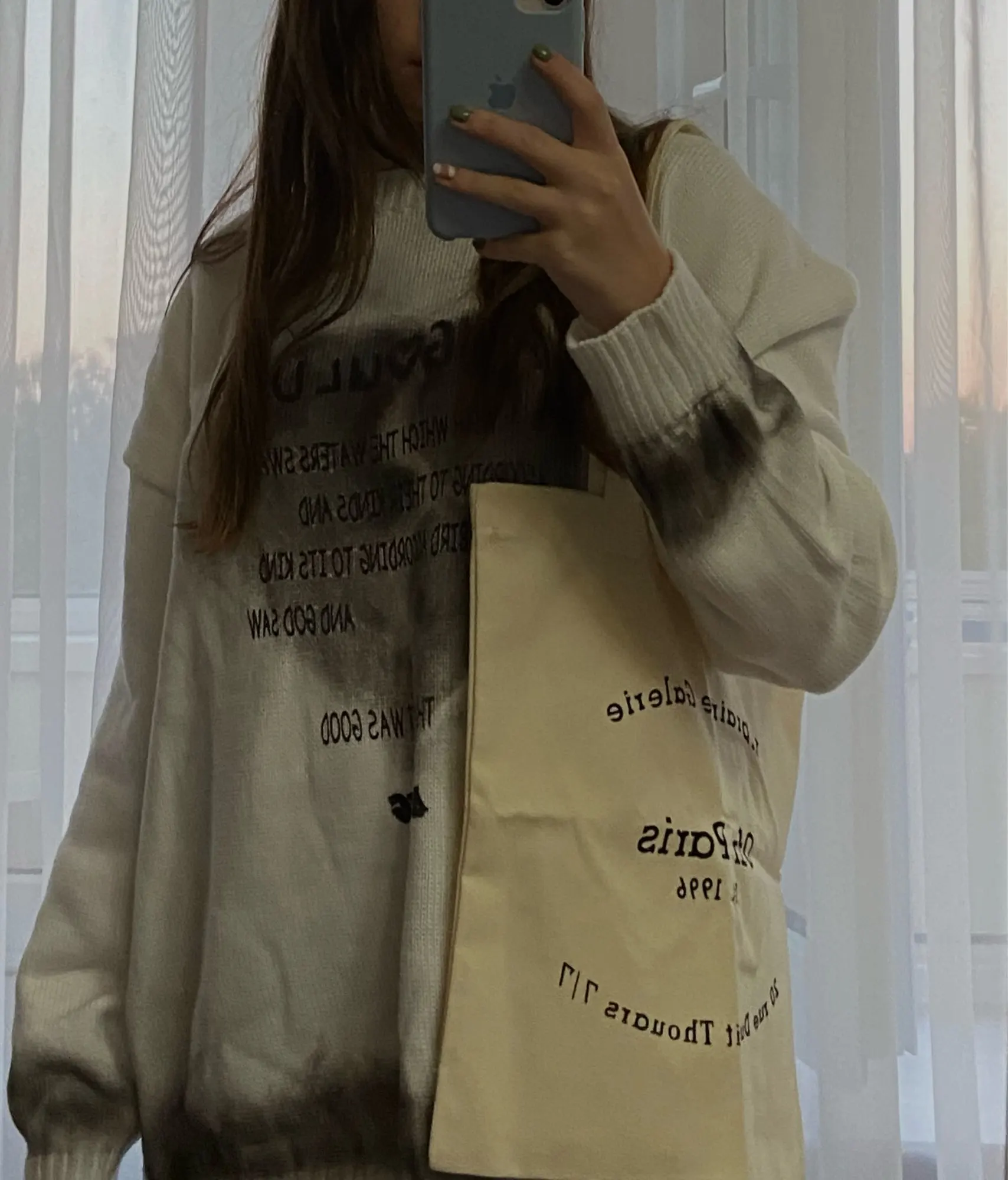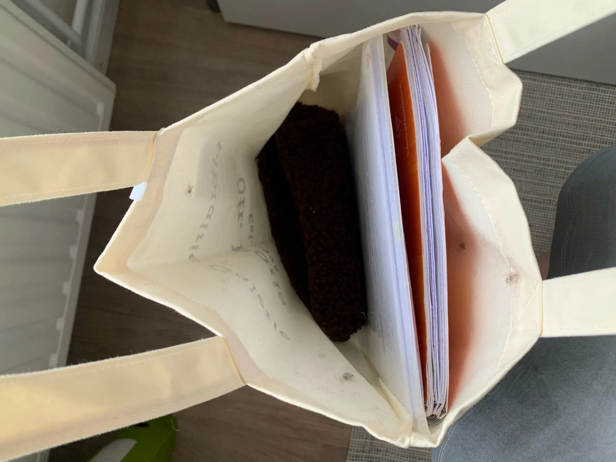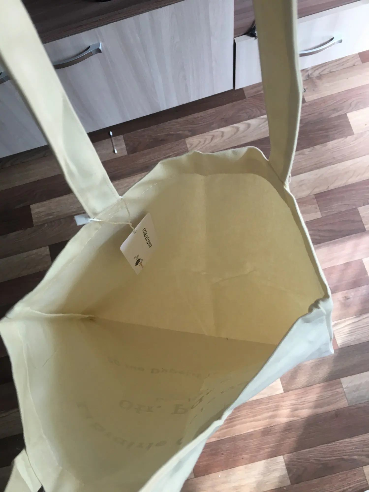 Шопер из ткани средней плотности, выглядит точно как на картинке. Буквы у принта четкие, цвет как на фото. Ручки длинные, будет удобно носить на плече. В него свободно вмещается папка А4, такая же тетрадь и большой пенал. Швы не очень хорошие: стежки широкие и нитки торчат, но это поправимо. Продавец отправил быстро, дошел за три недели. В целом могу рекомендовать товар к покупке!