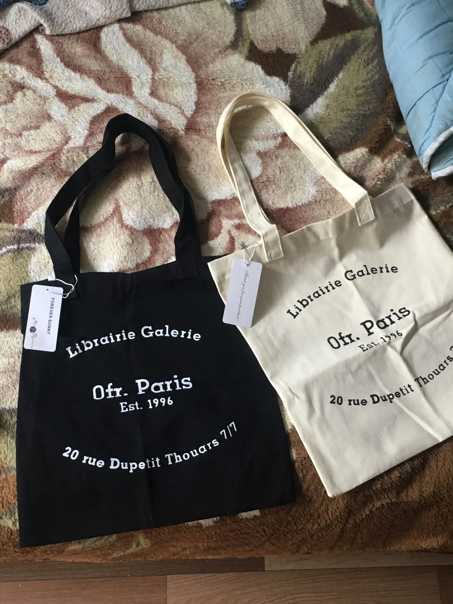 Сумка-шоппер женская из хлопка и льна, с принтом в виде парижских букв